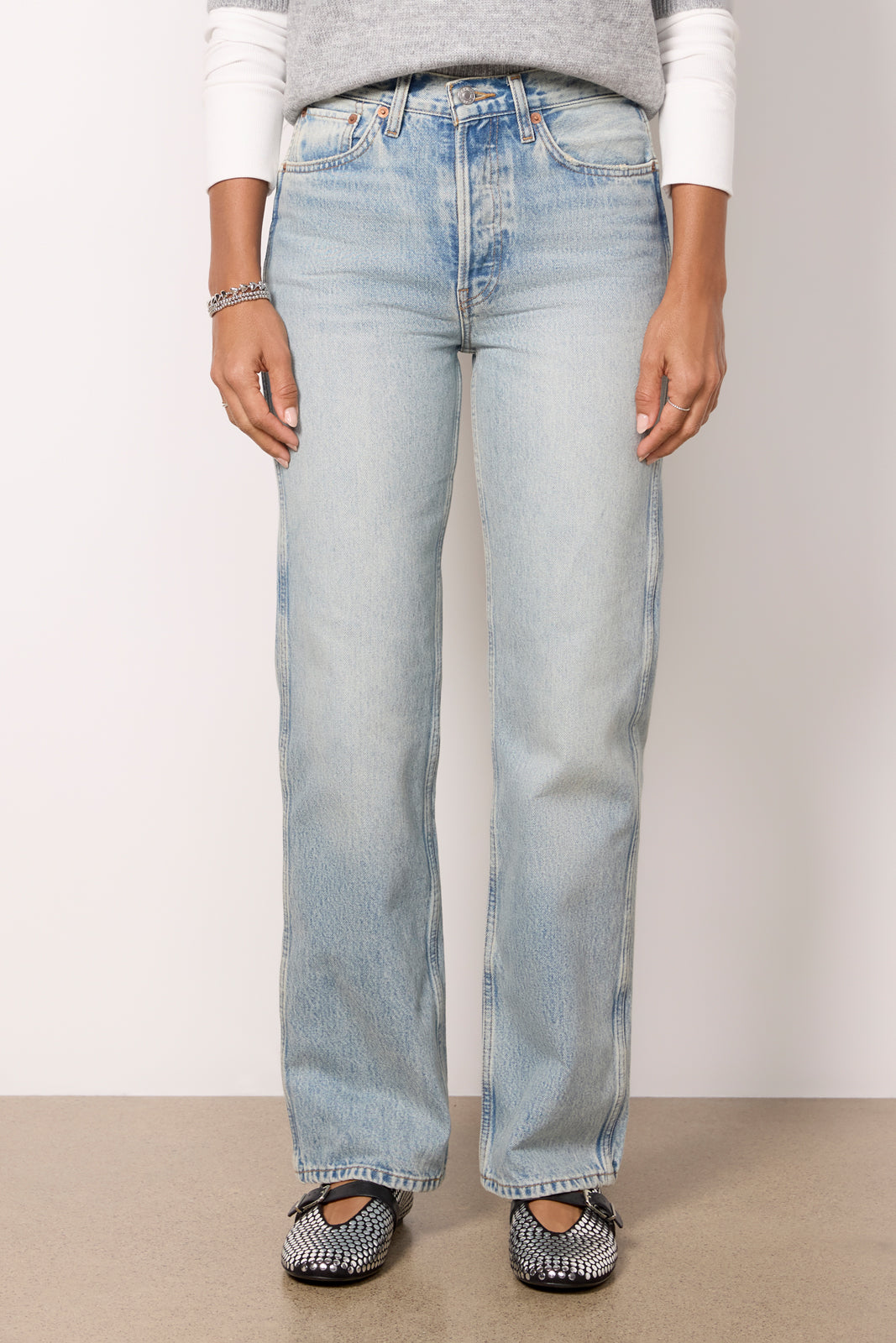 A high-rise waist and relaxed leg create the ’90s-inspired silhouette of these RE/DONE jeans. crafted in rigid organic cotton denim with a button fly closure and full-length hems.