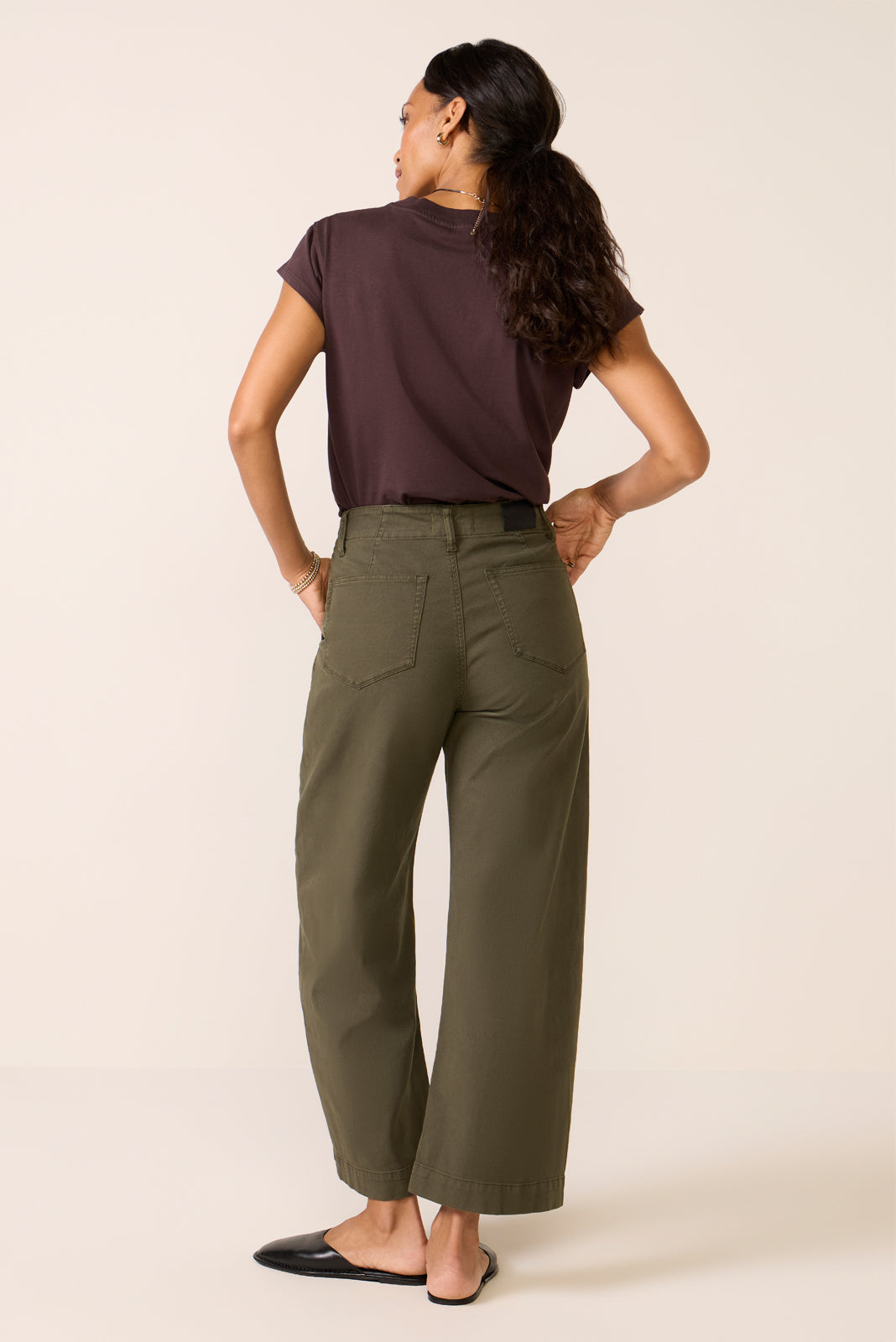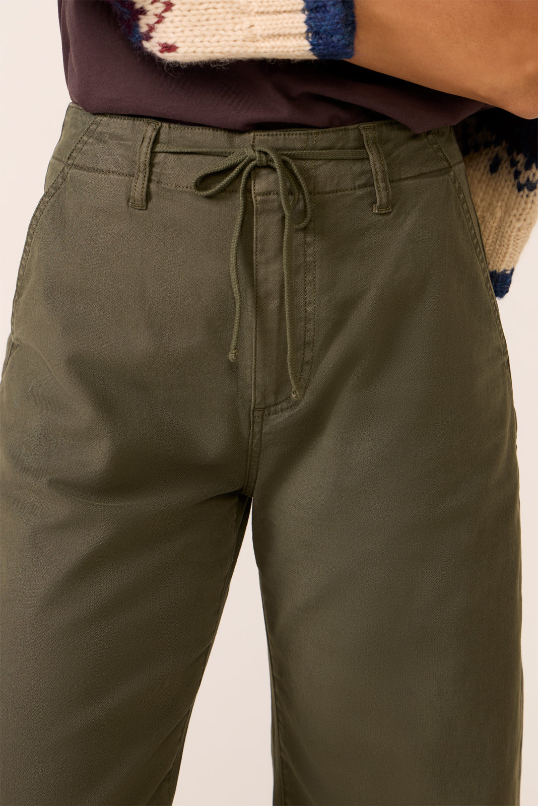 Crafted from soft stretch cotton. the Areillia Ankle Pant by Paige features a high-rise waist. barrel leg silhouette. ankle-length hems. and a tie-waist detail.