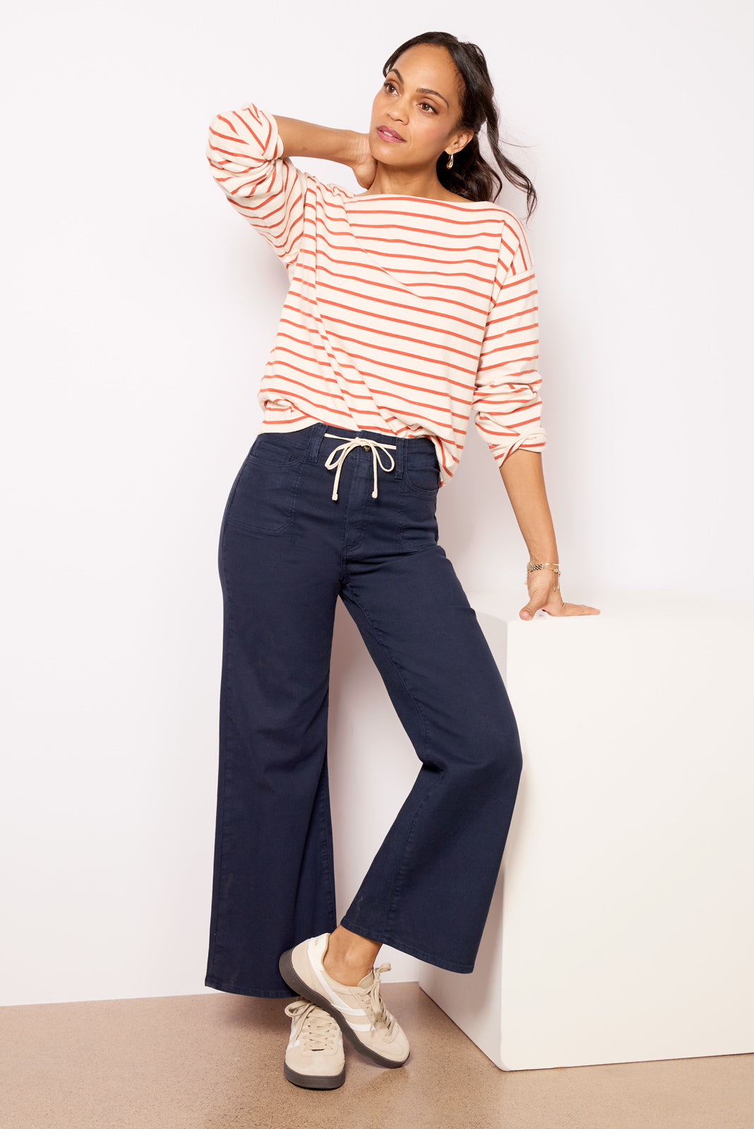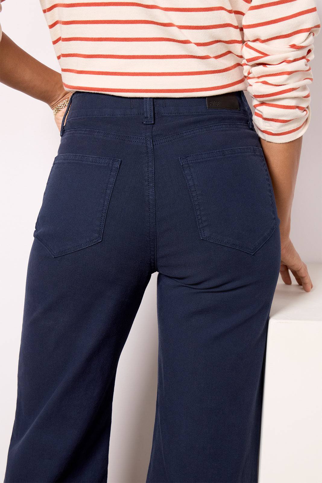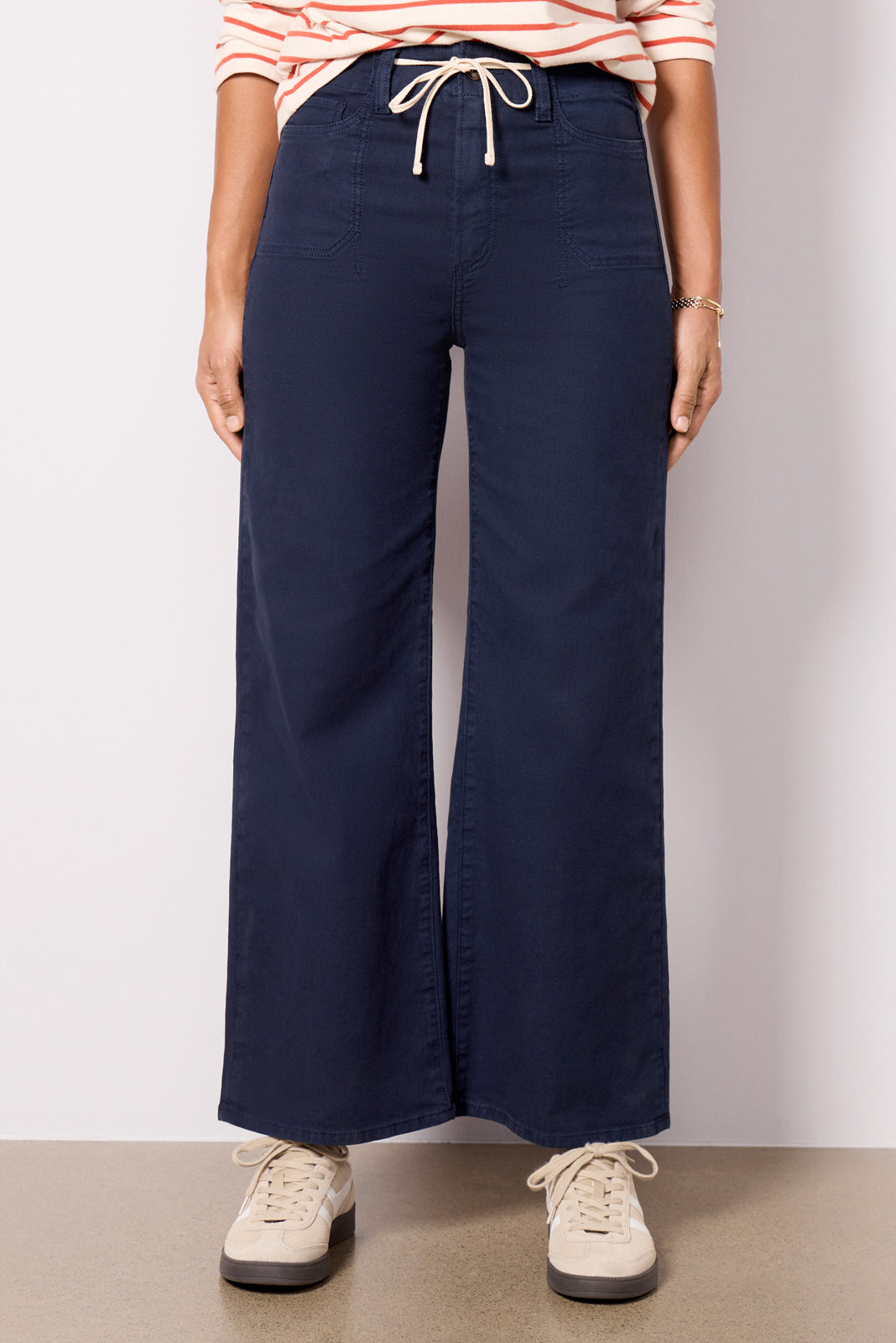 Crafted in soft twill fabric. these stylish wide leg pants by Paige will instantly elevate your wardrobe. featuring a full-length inseam. patch pockets. and a high-rise waist with an adjustable tie.