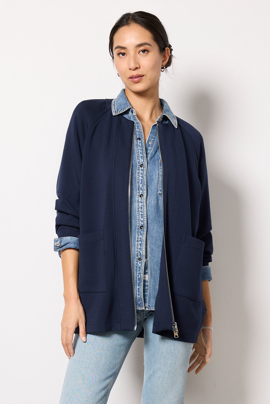 Finished in their signature DoubleSoft® fabric. the Augusta zip-up sweatshirt by Varley is the perfect throw-on-and-go layer. featuring an oversized. longline silhouette with front patch pockets. raglan sleeves. and a two-way zipper.