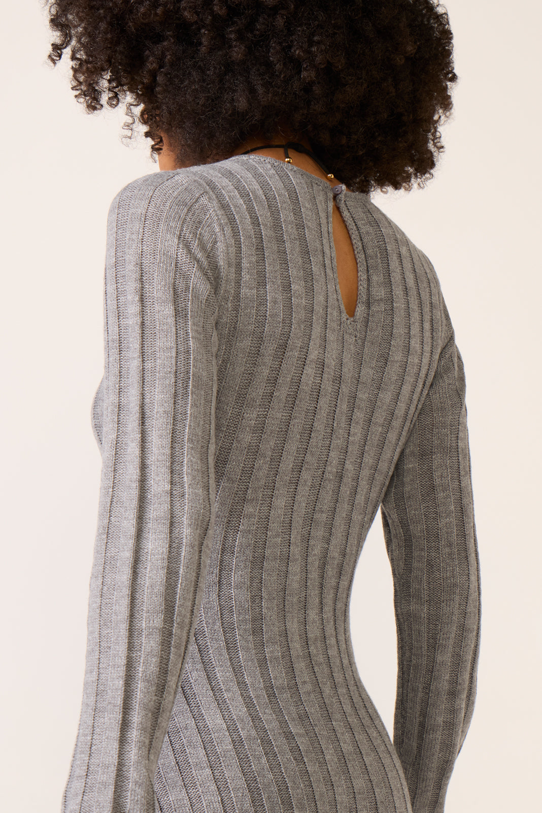 Comfortable and chic. the Babysoft Fit and Flare Midi Dress by French Connection features a crew neckline. a keyhole button back closure. and a maxi silhouette that is perfect for dressing up or down.?