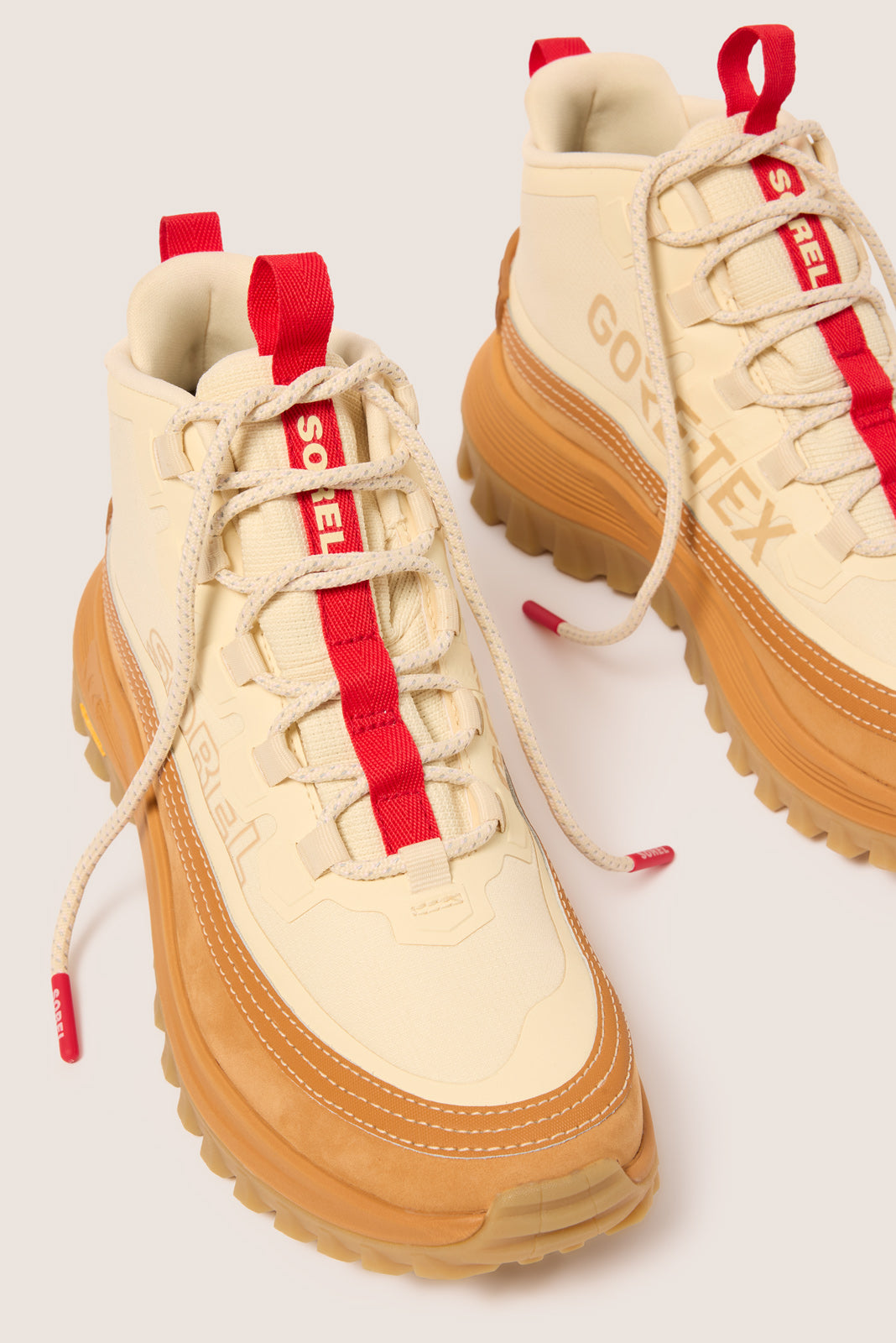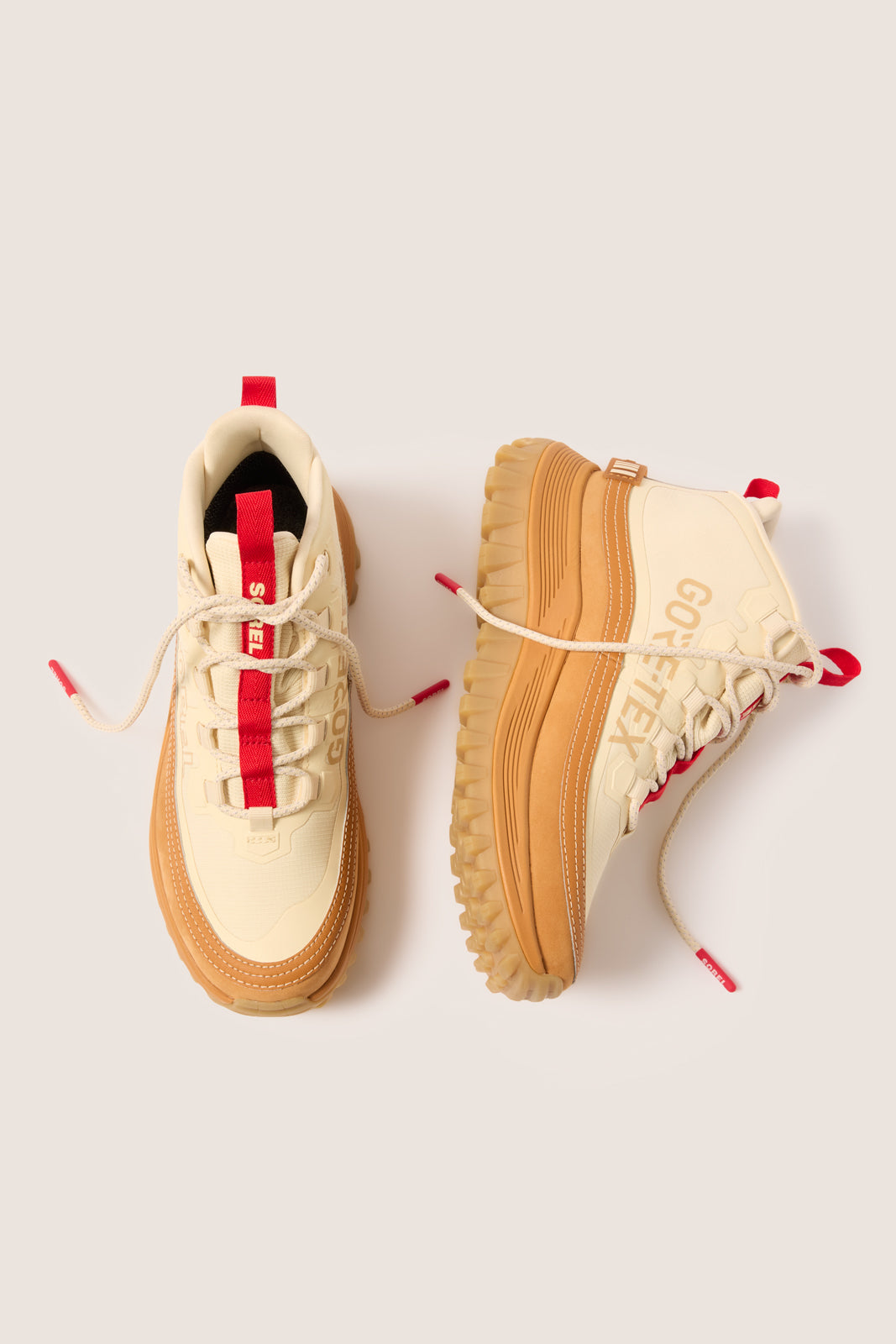 Blending the best of both a hiking boot and a modern sneaker. the Callsign Horizon Mid GTX by SOREL features a leather and textile upper equipped with Gore-Tex??waterproof technology and a high-traction outsole.
