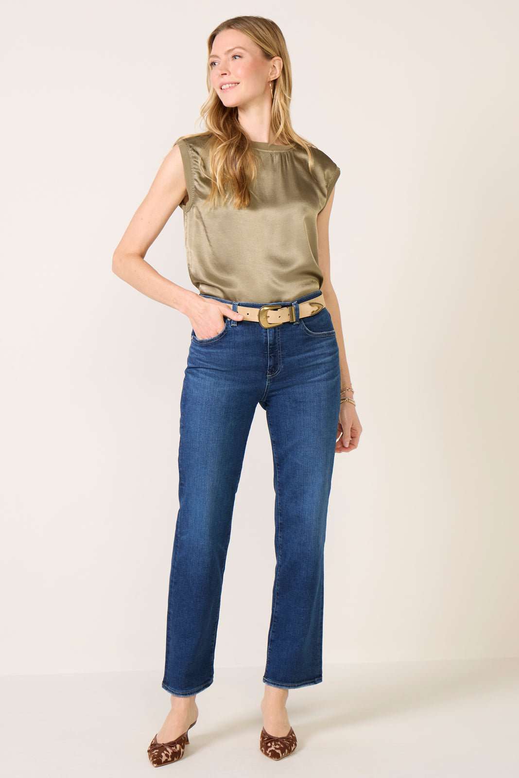 A satin finish elevates the City Nights Muscle Tank by LA Made. featuring a crew neckline. contrasting rib knit details. and a classic fit.?