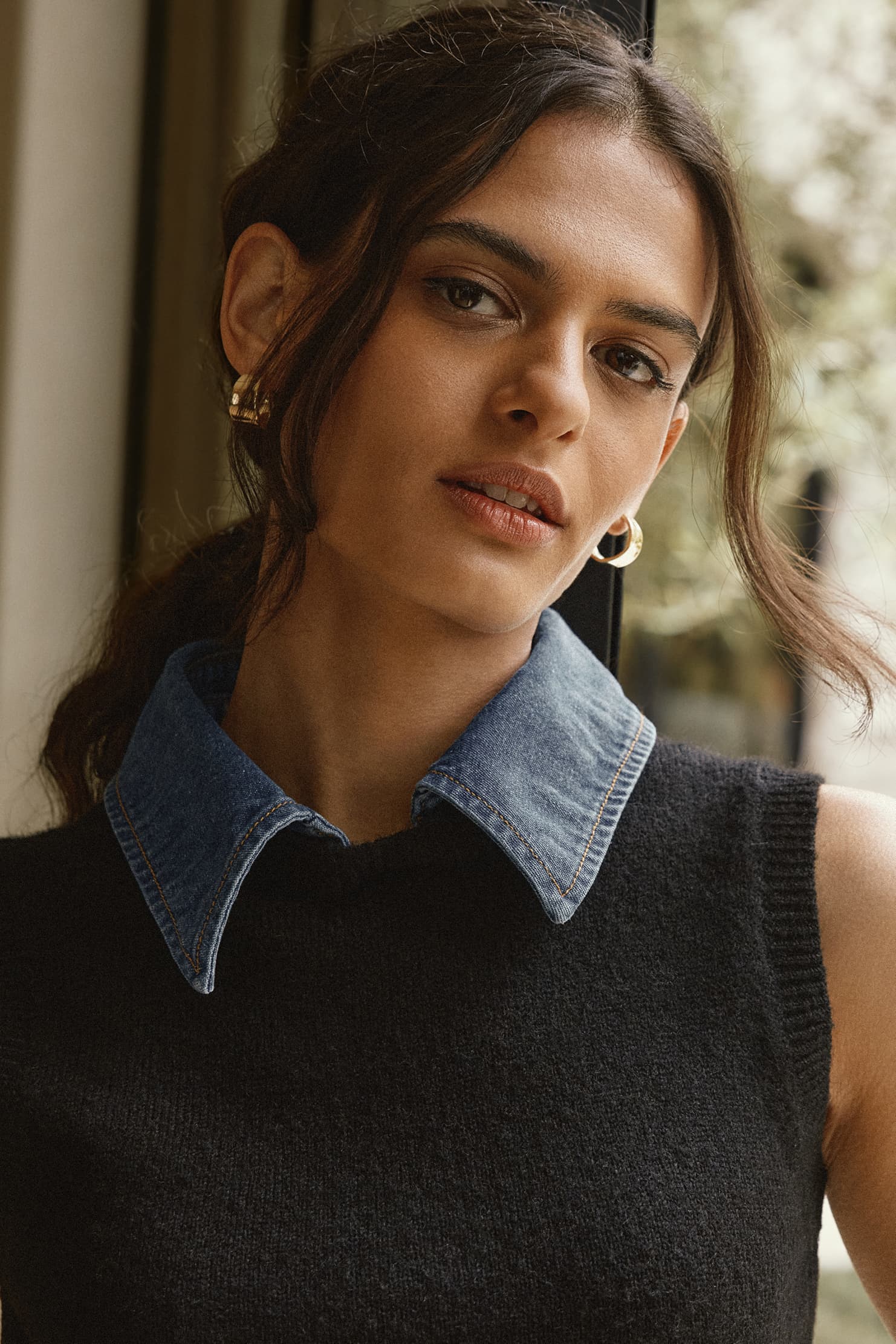 A chic two-in-one staple for your workwear wardrobe. the Ellie sleeveless sweater tank by French Connection features a cropped knit body with a removable denim collar.