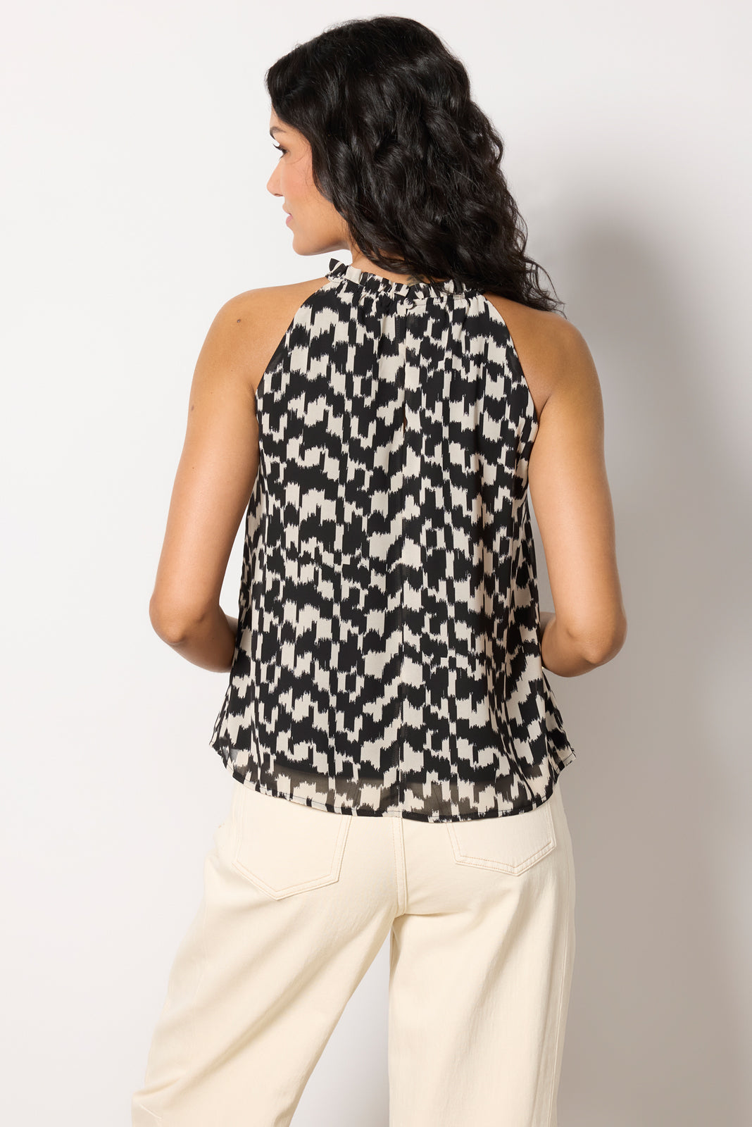 Give your wardrobe a chic pop of print with the Etta Halter Tank by EVEREVE. crafted in flowy chiffon fabric with a ruffled collar and back button closure.