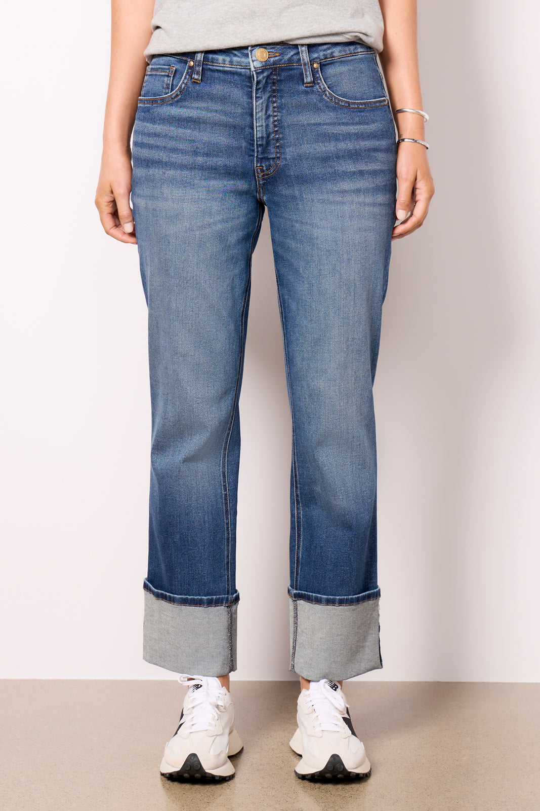 A relaxed leg with cuffed hems defines these easy-to-love jeans by KUT From The Kloth. finished in comfort-stretch denim with a faded blue wash and high-rise fit.