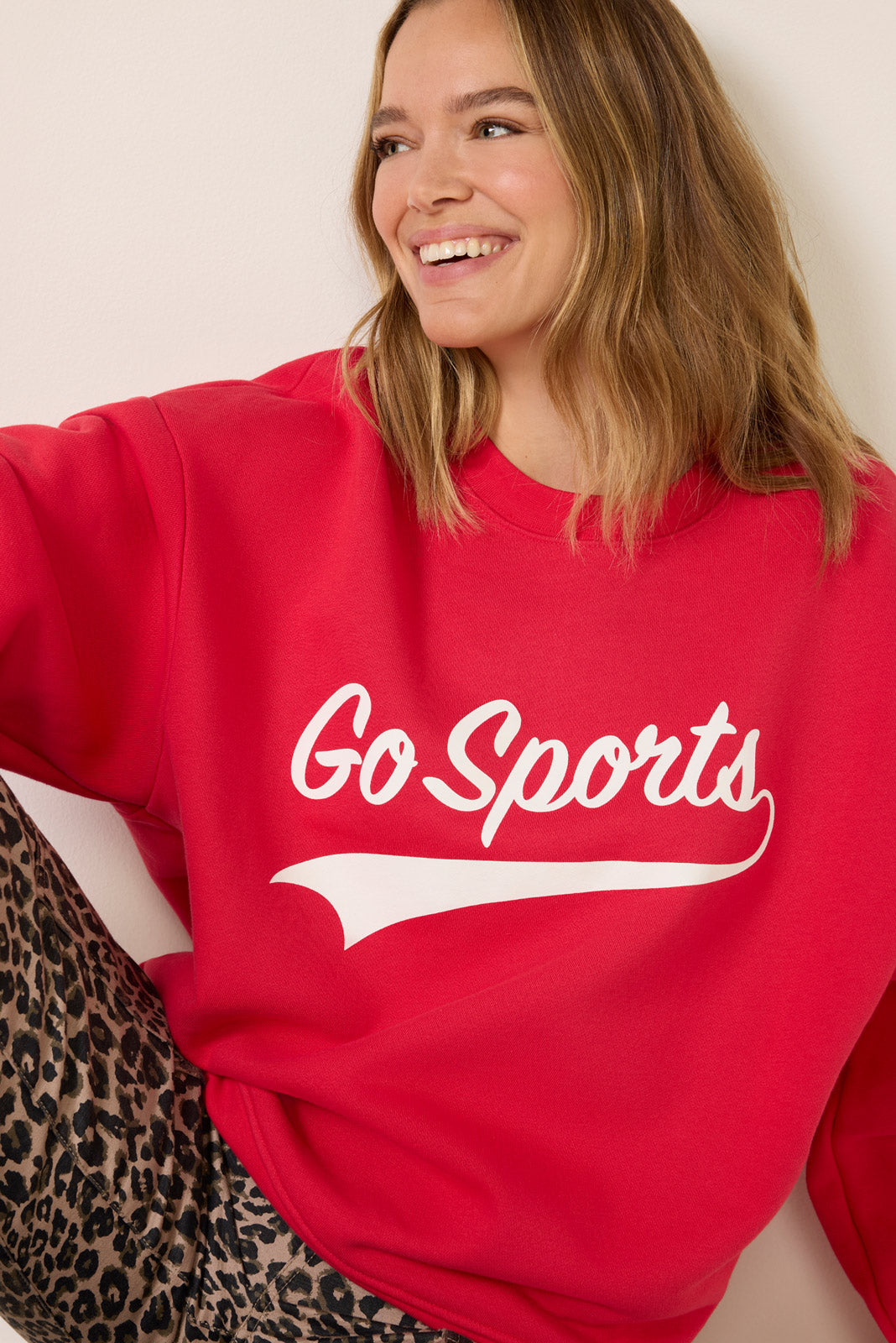 Cheer on your favorite team with the Go Sports Sweatshirt by Favorite Daughter. featuring a crew neckline. dropped shoulders. and a comfortable oversized fit.?