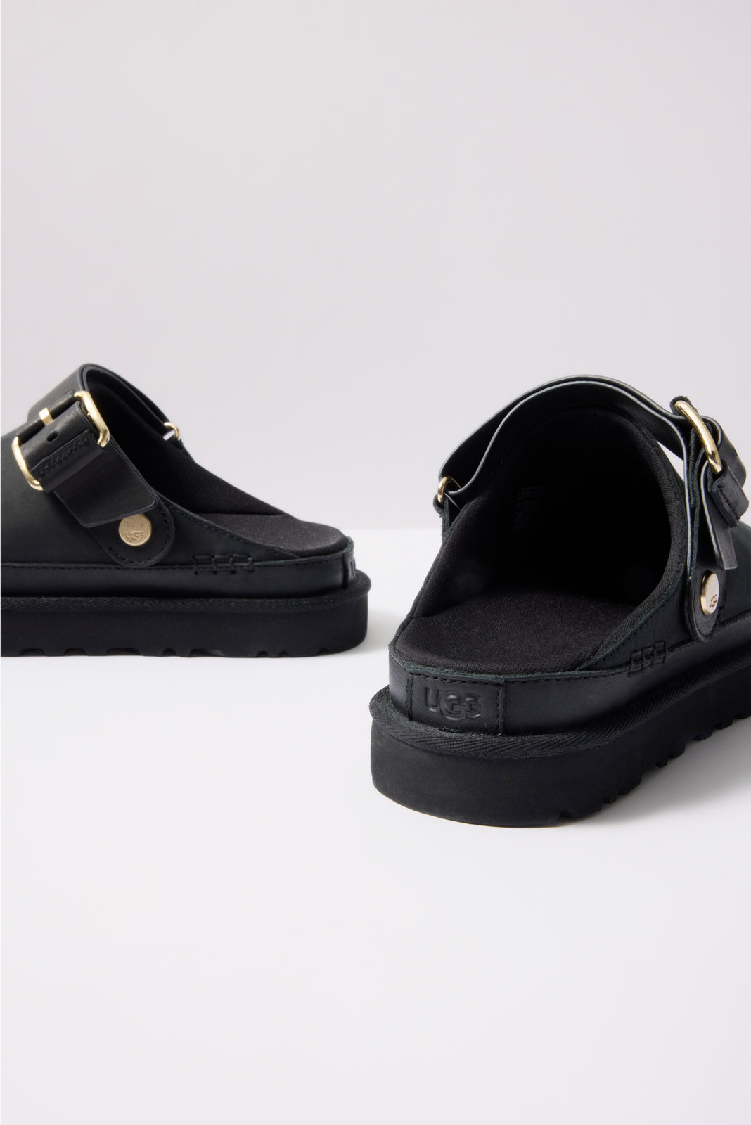 The Goldenstar Villa Clog by UGG? will be your new go-to for everyday wear. featuring a Nubuck upper. lightweight platform sole. and round toe. The adjustable buckle strap swivels to wear behind the heel or stacked on top for a slip-on option.