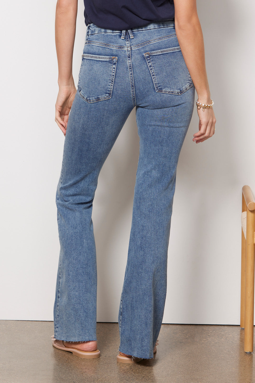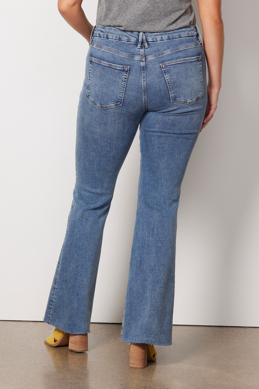 Flared and oh-so-flattering. you’ll be wearing these Good American jeans again and again. An exposed button fly updates this high-rise silhouette featuring raw hems. a full-length flare leg. and comfort-stretch denim fabric.