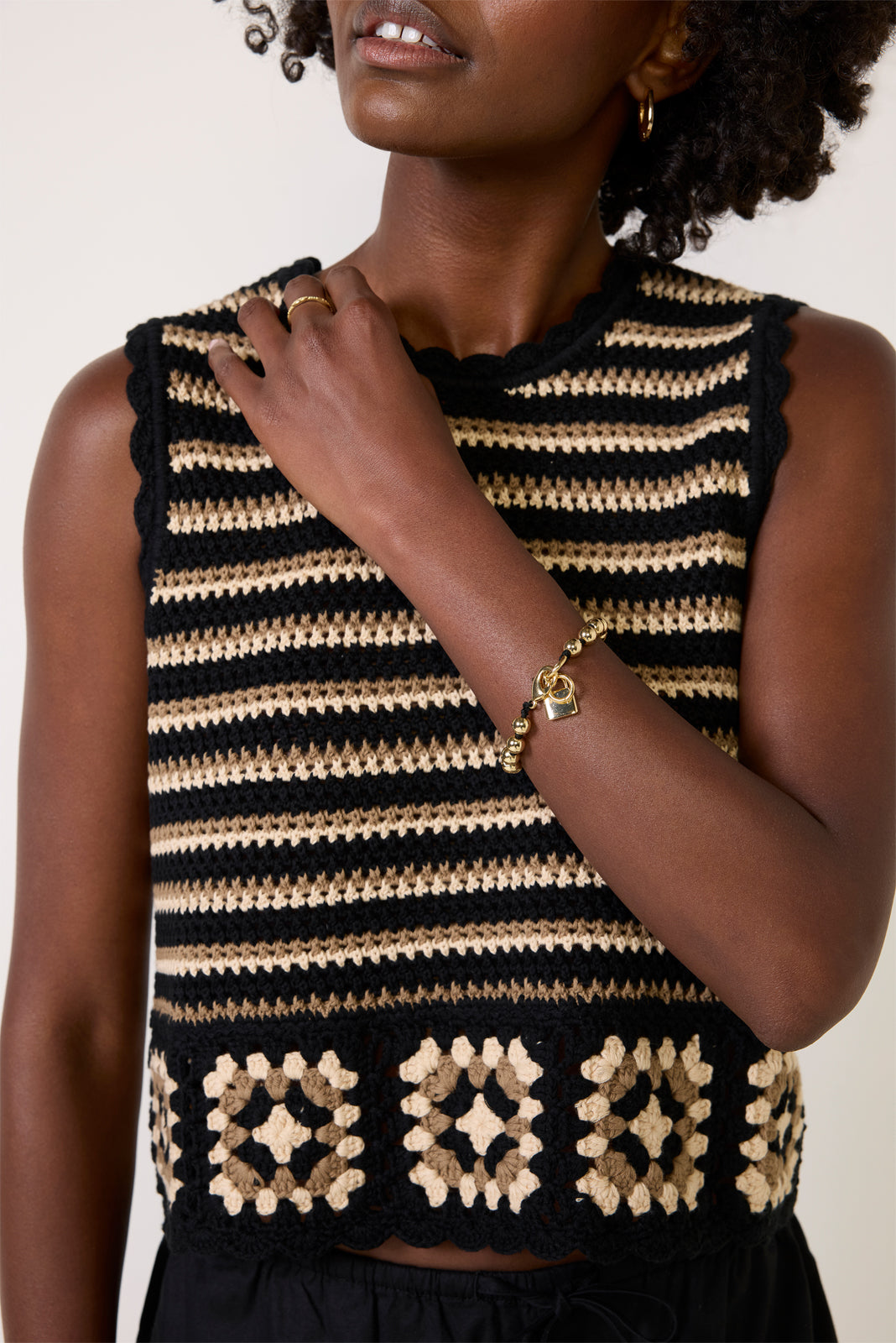 Elevate your warm-weather collection with this striped crochet tank top by Rails. featuring a cropped silhouette. back tie closure. and scalloped trim.