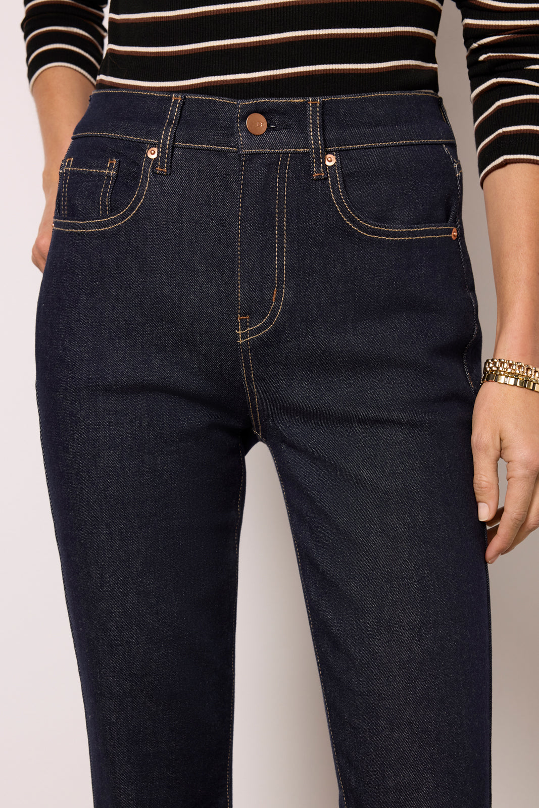 Flared and flattering. these EVEREVE jeans are a chic addition to your denim collection. featuring a high-rise waist. full-length hems. and dark rinse wash for day-to-night wear.