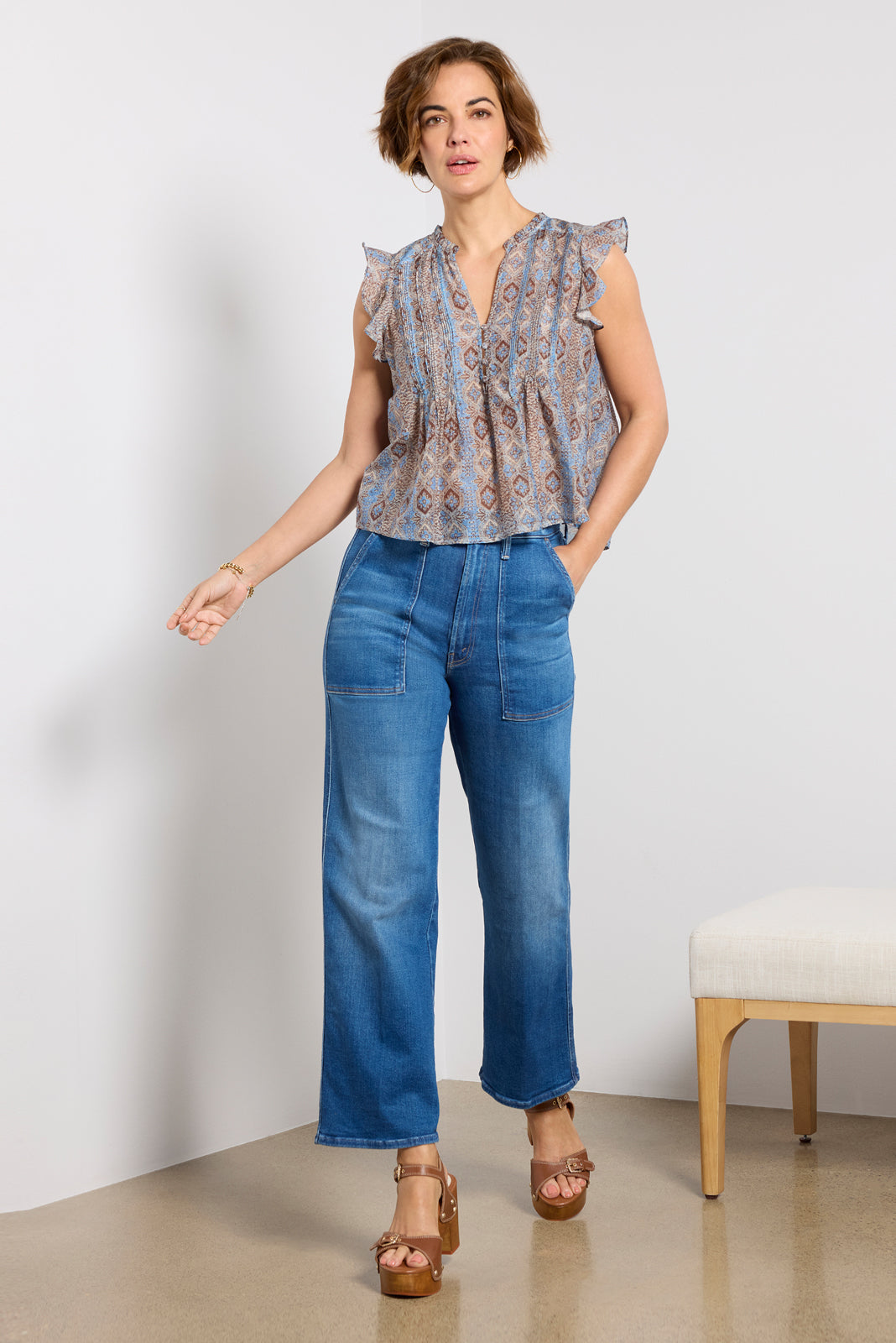 Polish your wardrobe with the Idris Top by Paige. featuring a split neckline. partial front button placket. flutter sleeves. and a slightly cropped silhouette.?