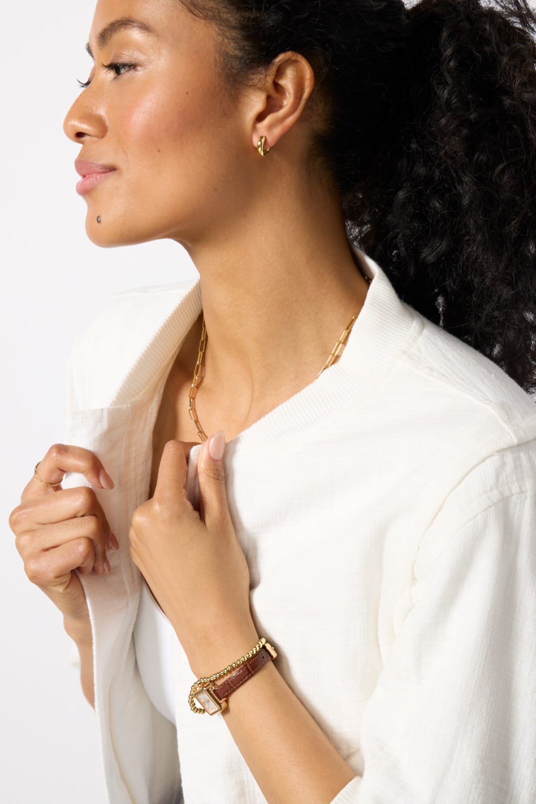 Refresh your layering collection with the Jordan Bomber Jacket by Bobi. Finished in textured cotton fabric. this chic jacket features?a snap-front silhouette with side pockets. three-quarter sleeves. and rib knit trim.