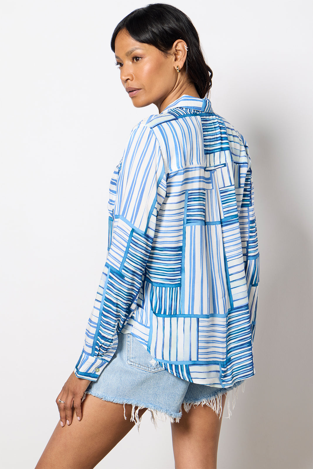 Go from workday to weekend plans in style with the Josephine?striped shirt by Rails. Finished in feather-light?woven fabric. this patterned button-down shirt features a left chest pocket. curved hem. and relaxed fit that’s perfect for dressing up or down.