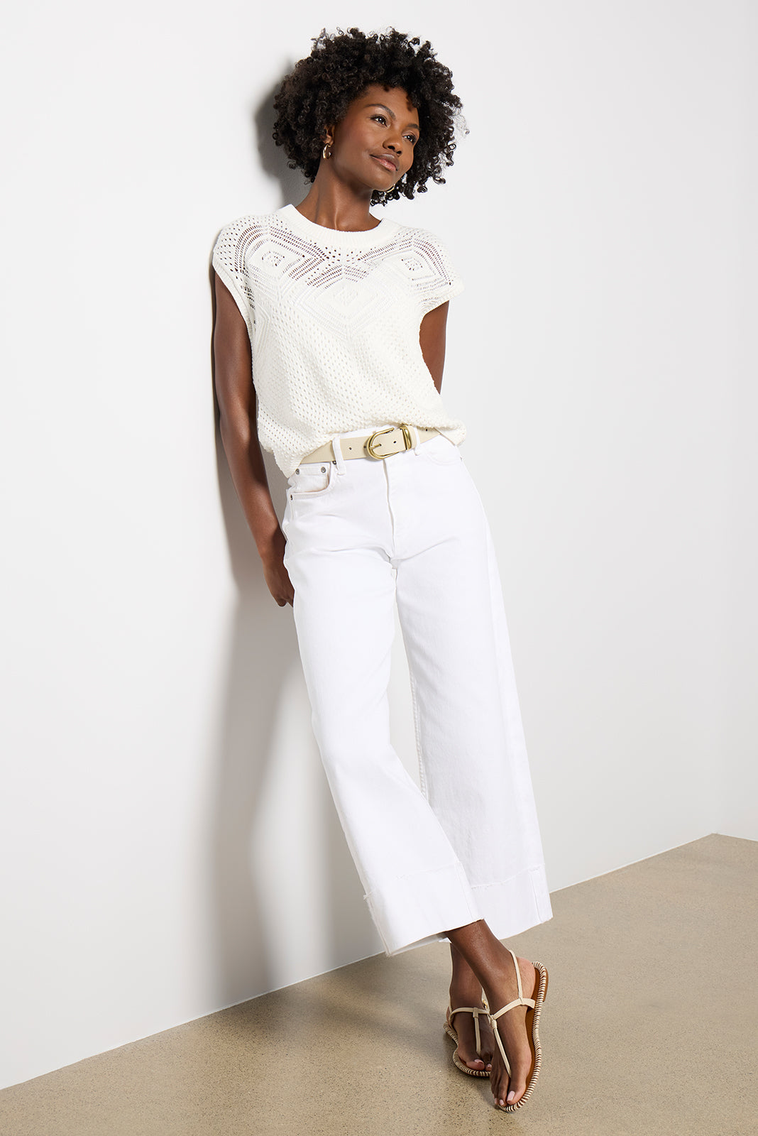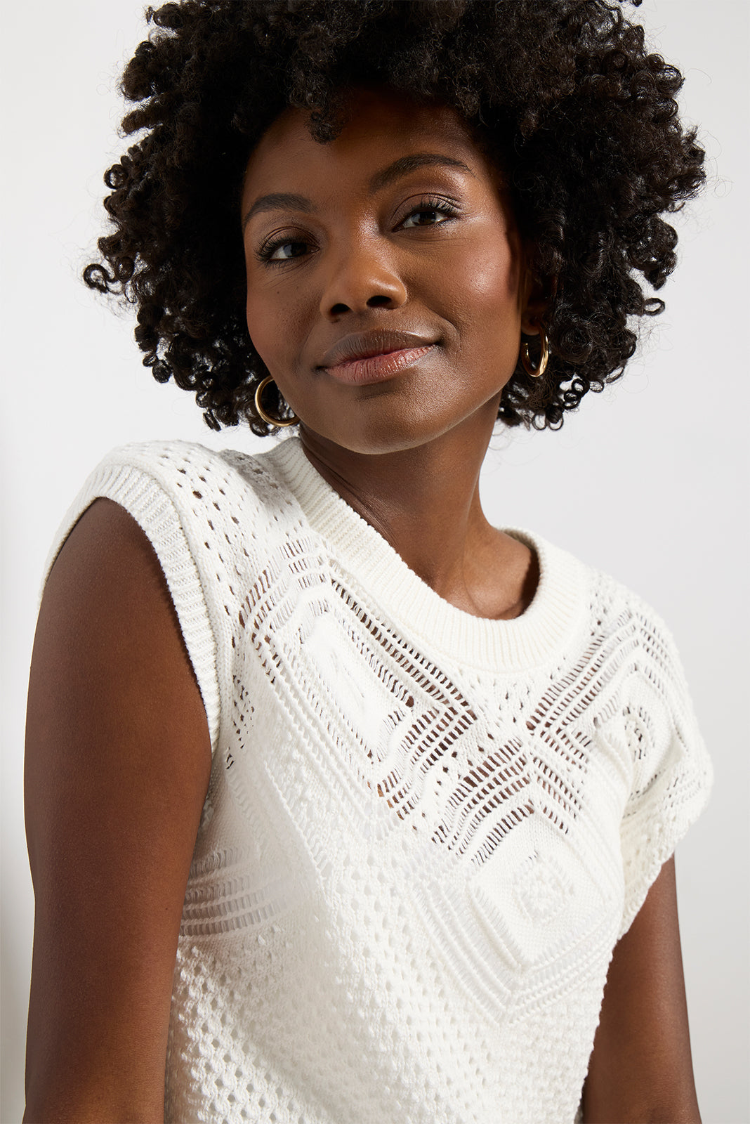 Elevate your summer wardrobe with the Journee crochet pullover by EVEREVE. Finished in a cotton knit with an open stitch design. this chic sweater features a cropped silhouette. ribbed trim. and cap sleeves.