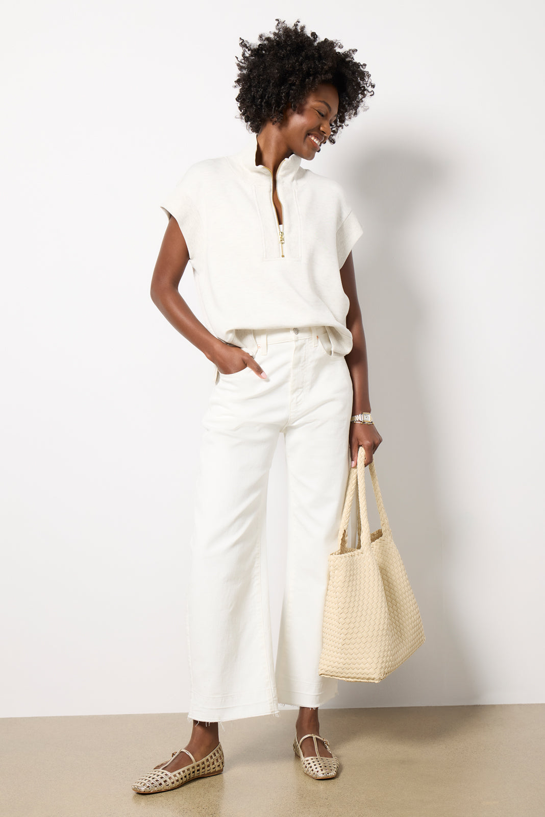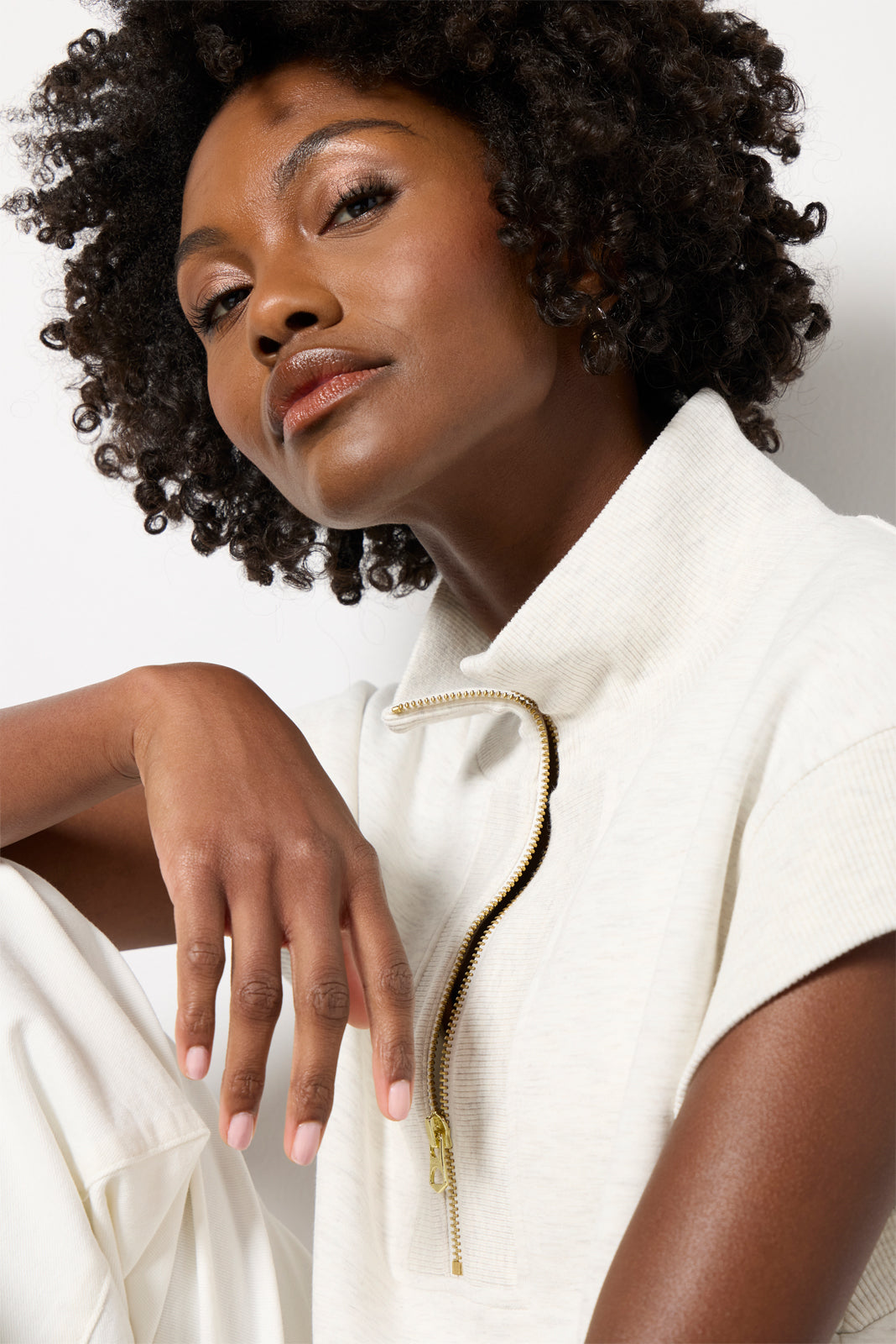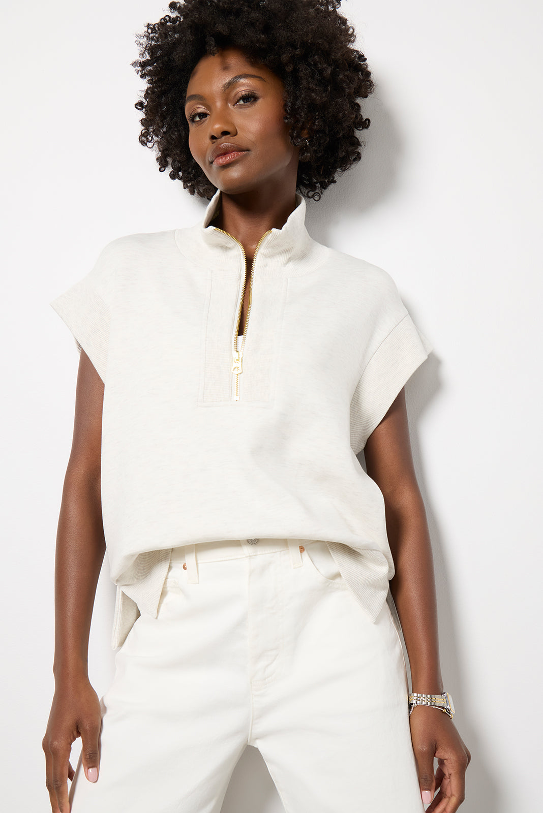 Stay comfy and chic with the Kelly half-zip sweatshirt by Varley. crafted in their signature DoubleSoft® knit fabric with a relaxed fit. cap sleeves. and ribbed trim.