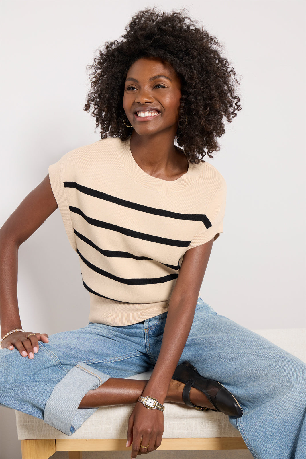 Step into spring in the Korey Pullover by EVEREVE. featuring a crew neckline. a flattering banded bottom. and bra-friendly gussets at the armhole.?