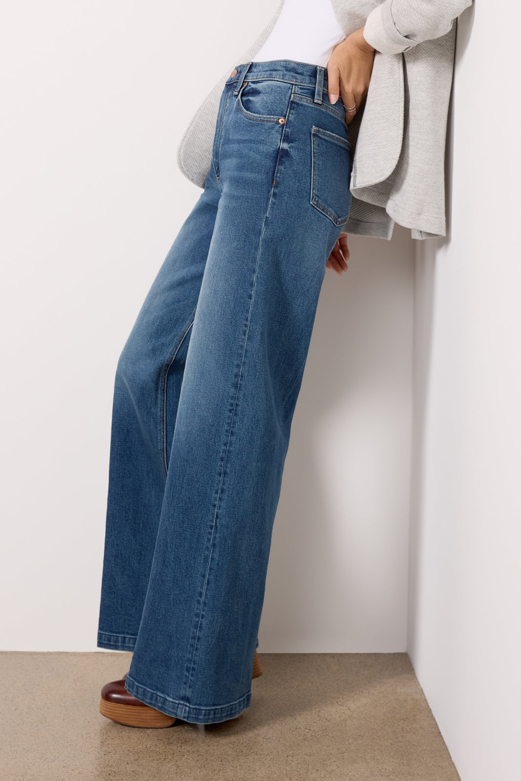 Relaxed yet polished. the Lana Jean by Pistola features a wide leg silhouette with a flattering high-rise fit and full-length inseam. They’re crafted in soft cotton denim with a hint of stretch for day-to-night wear.