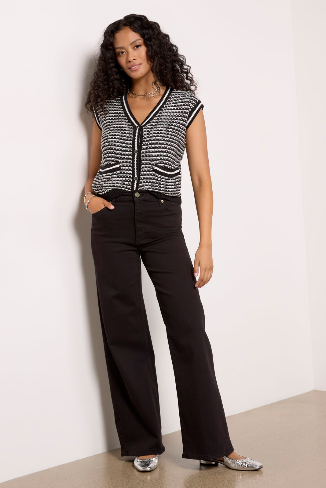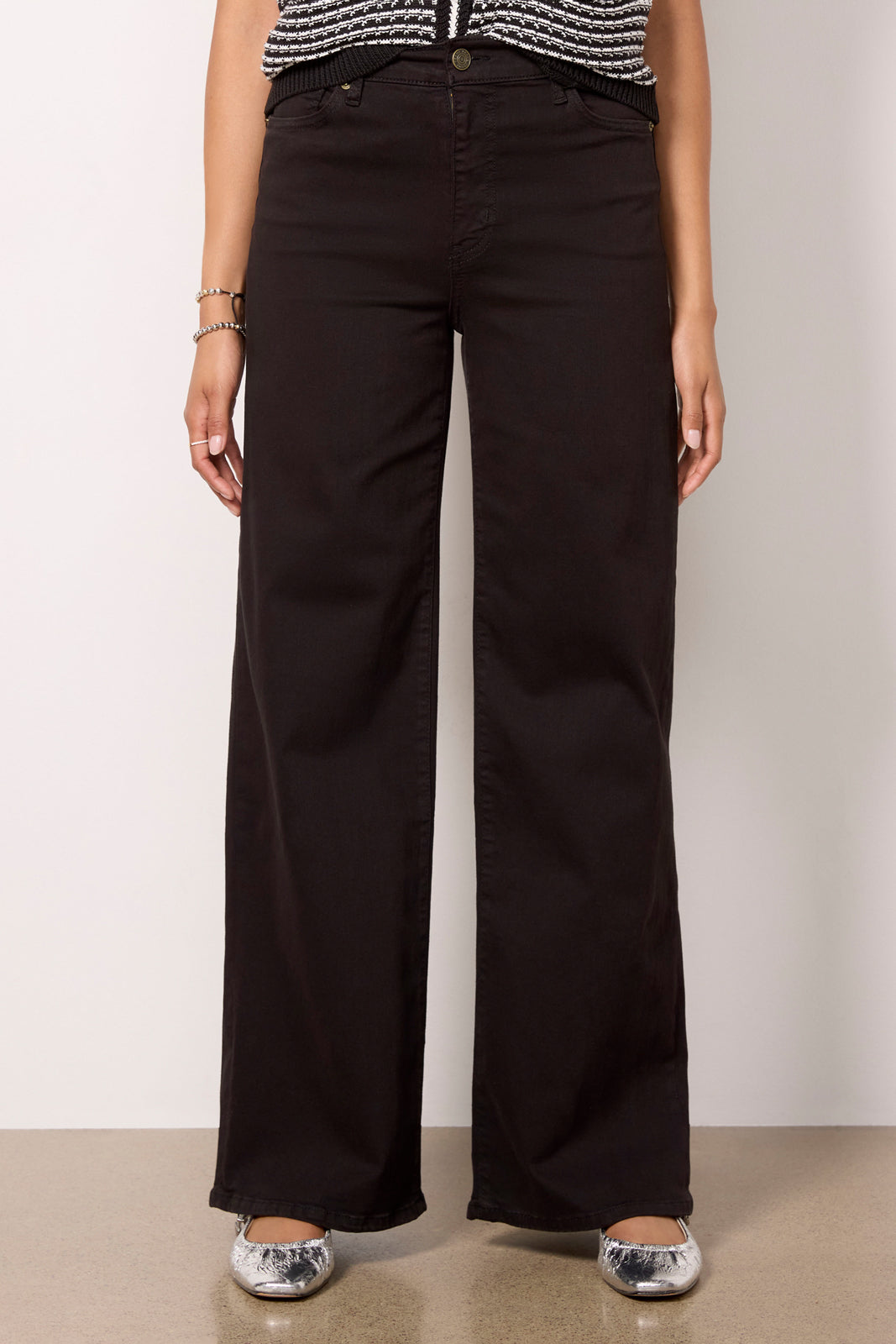 A wide leg jean that fits and flatters. the Le Slim Palazzo by FRAME is crafted in soft stretch denim and features a full-length inseam and versatile black wash. They’ll be your season-to-season staple with everything from a sweater and booties to a tee and slides.