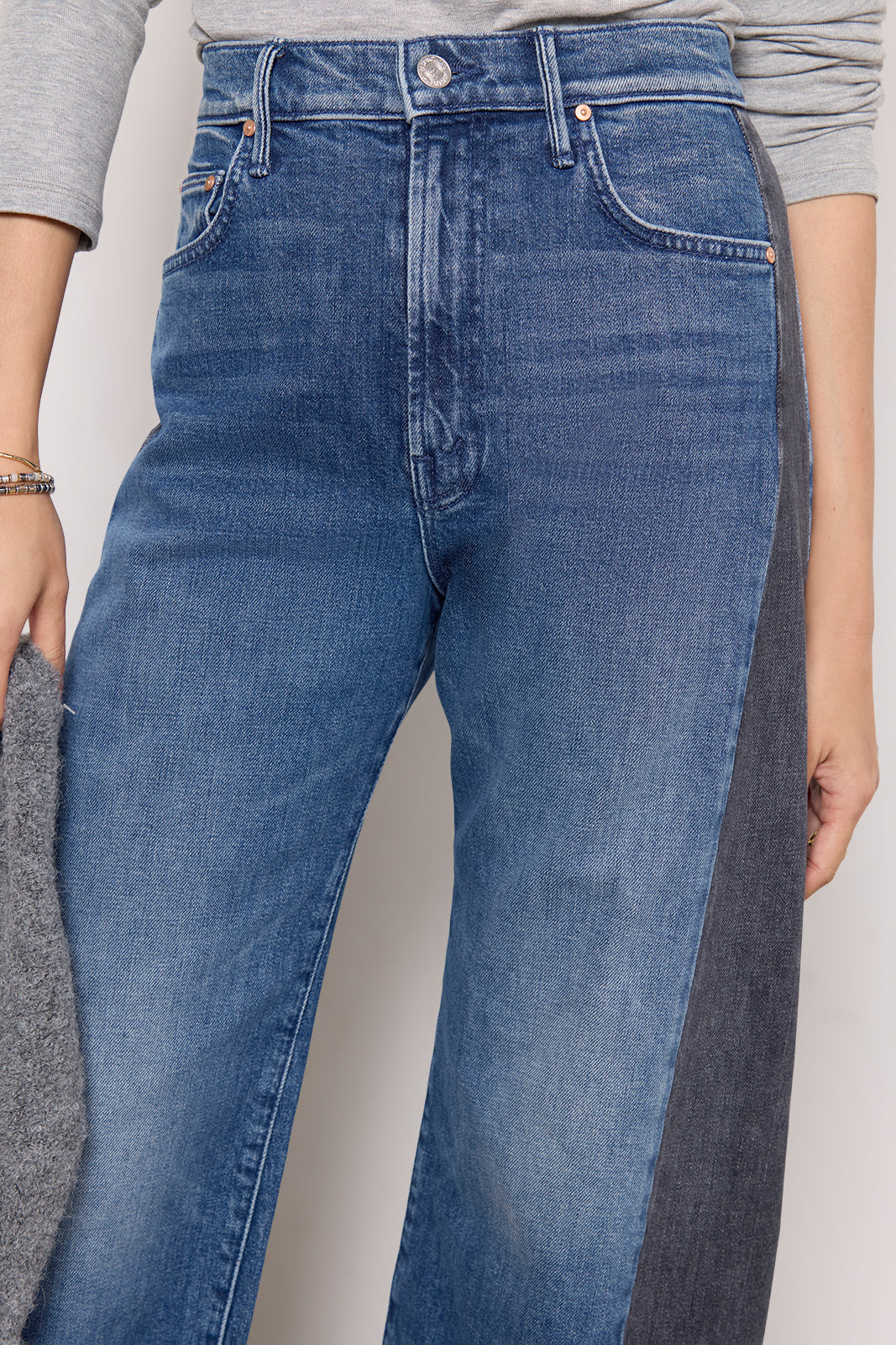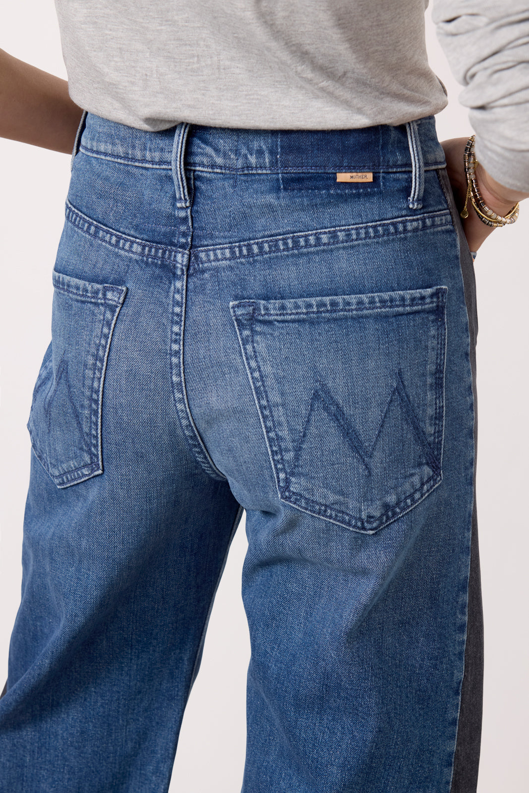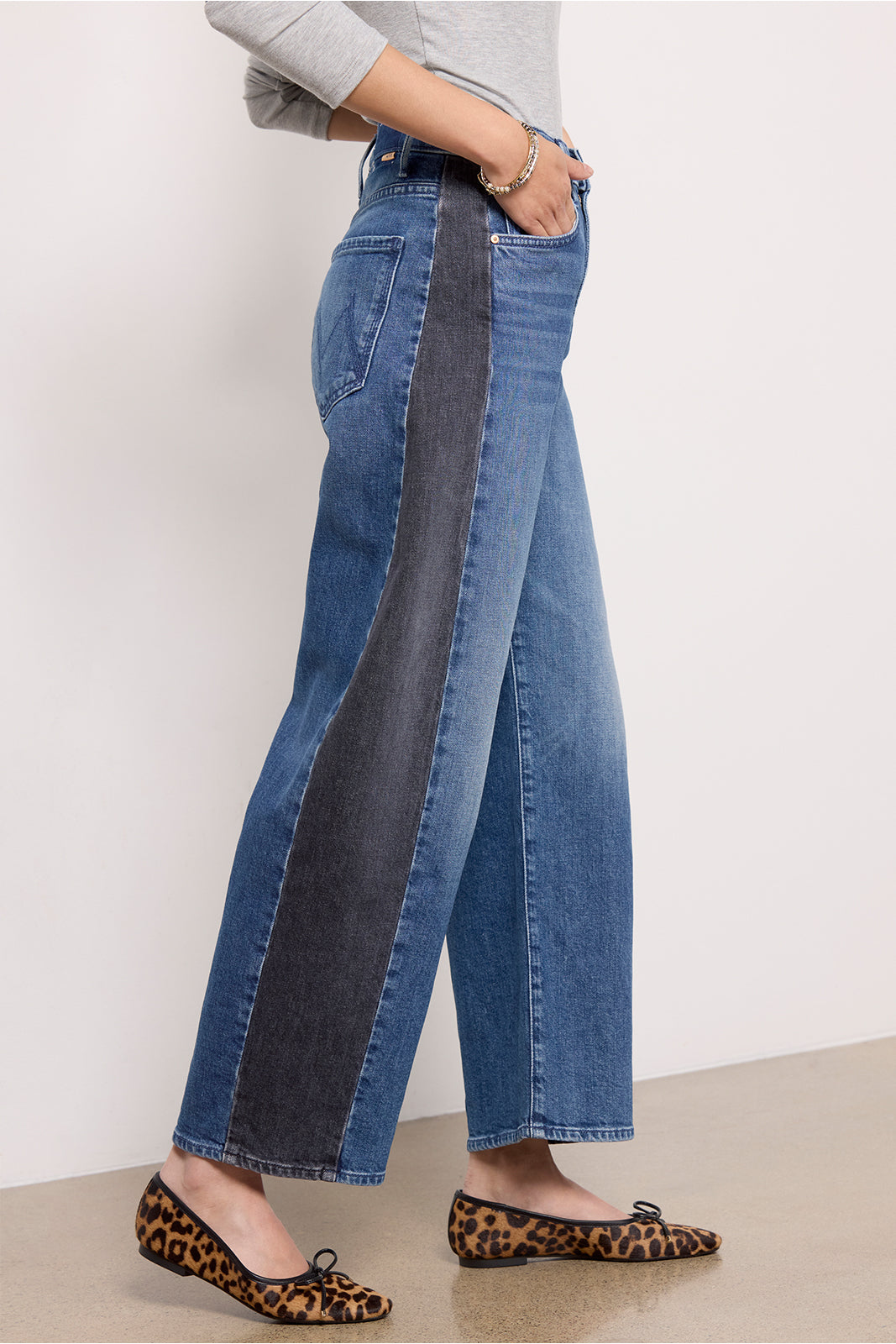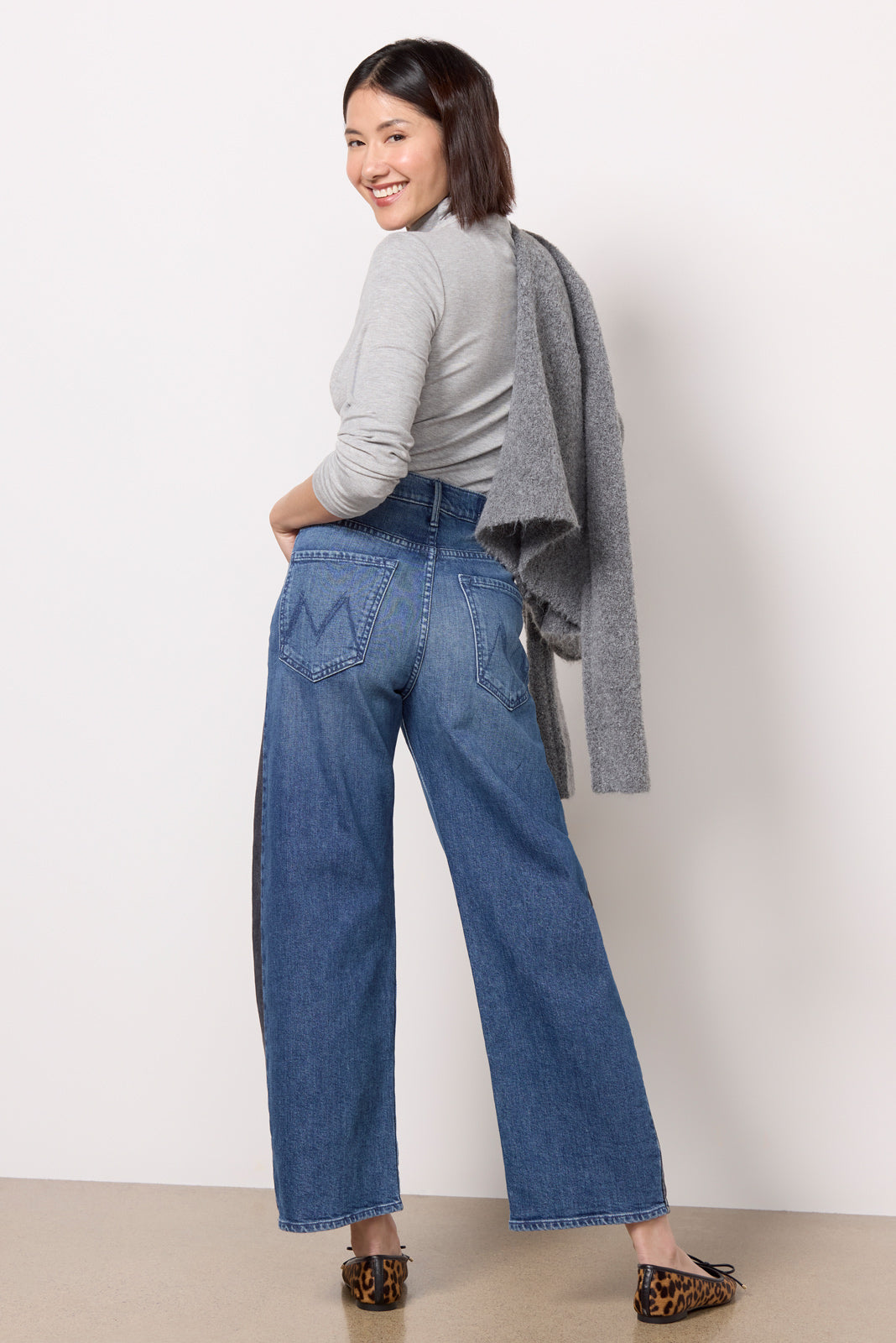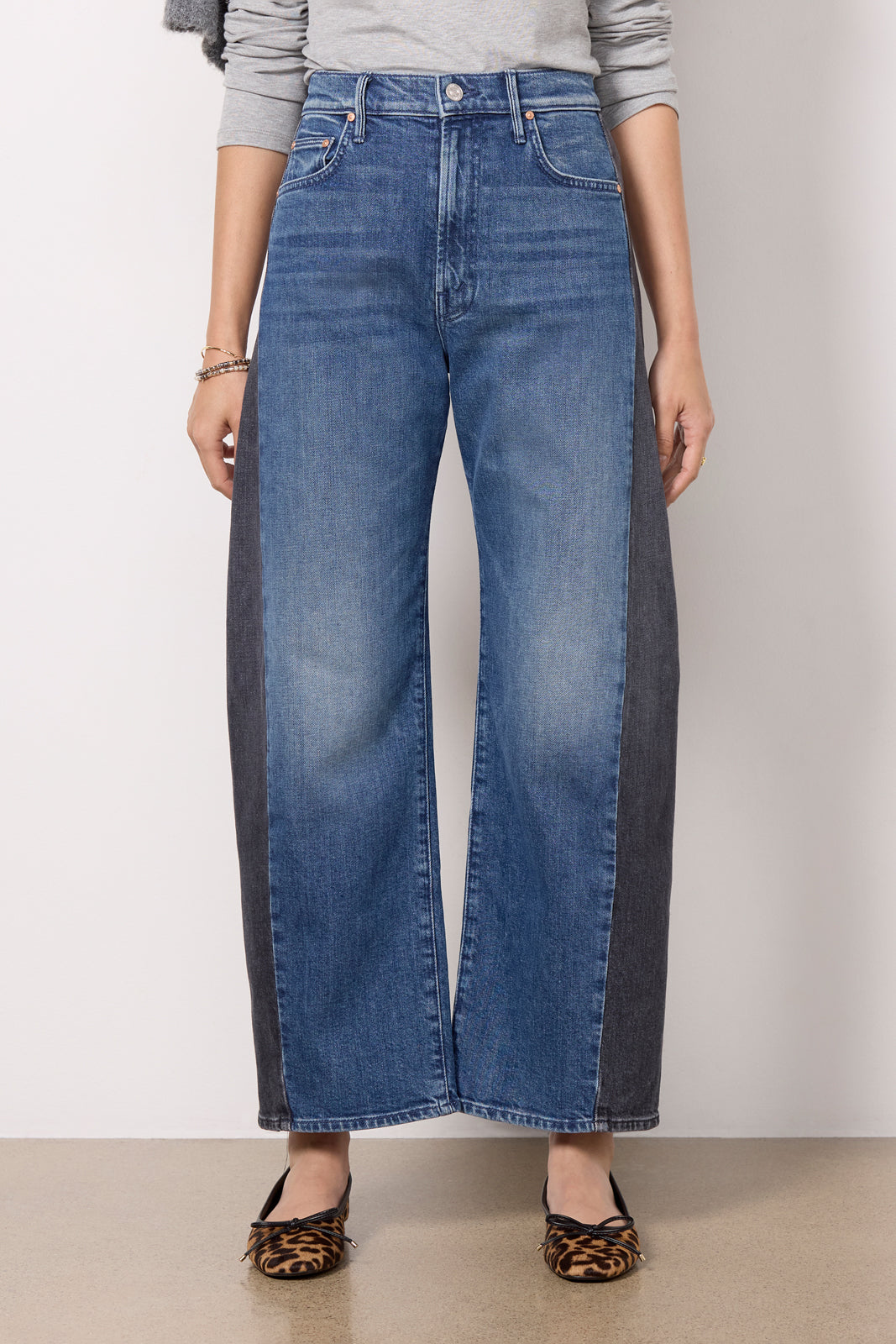 The Lil?Half Pipe Flood by MOTHER?is a petite barrel jean. featuring a high-rise fit. curved leg. and faded black panels?down the sides. Designed to complement petite body types. these jeans feature a higher knee placement. shorter inseam. and shorter rise for a perfect. always-flattering fit.