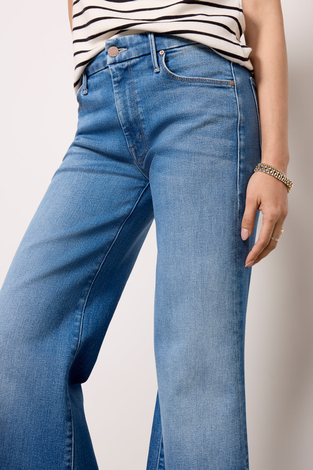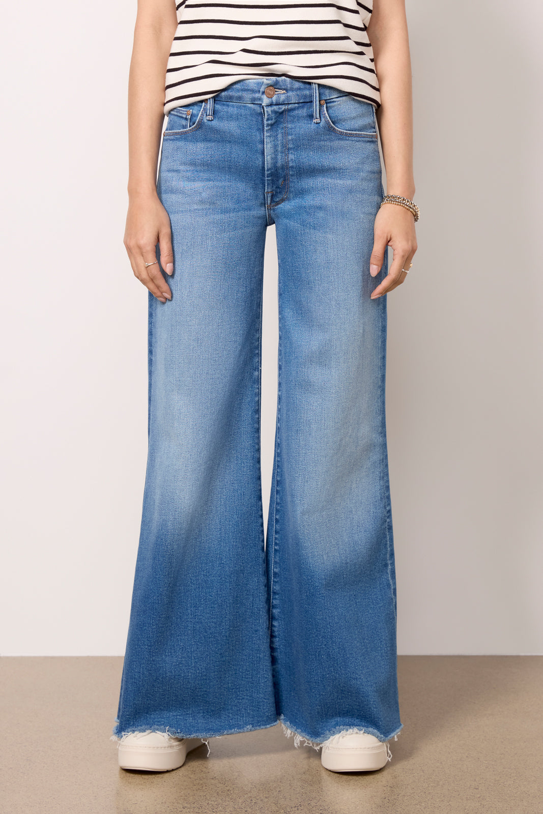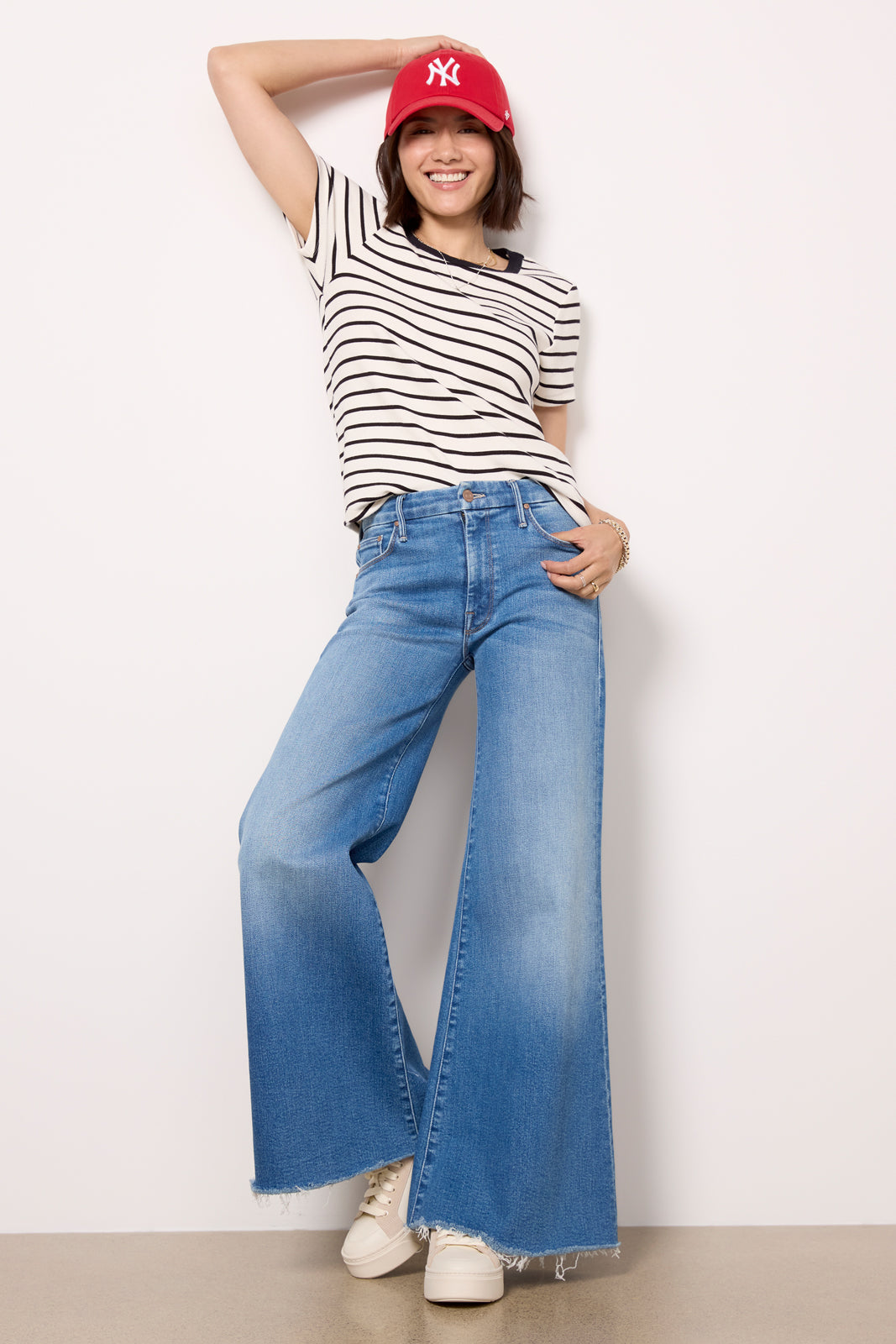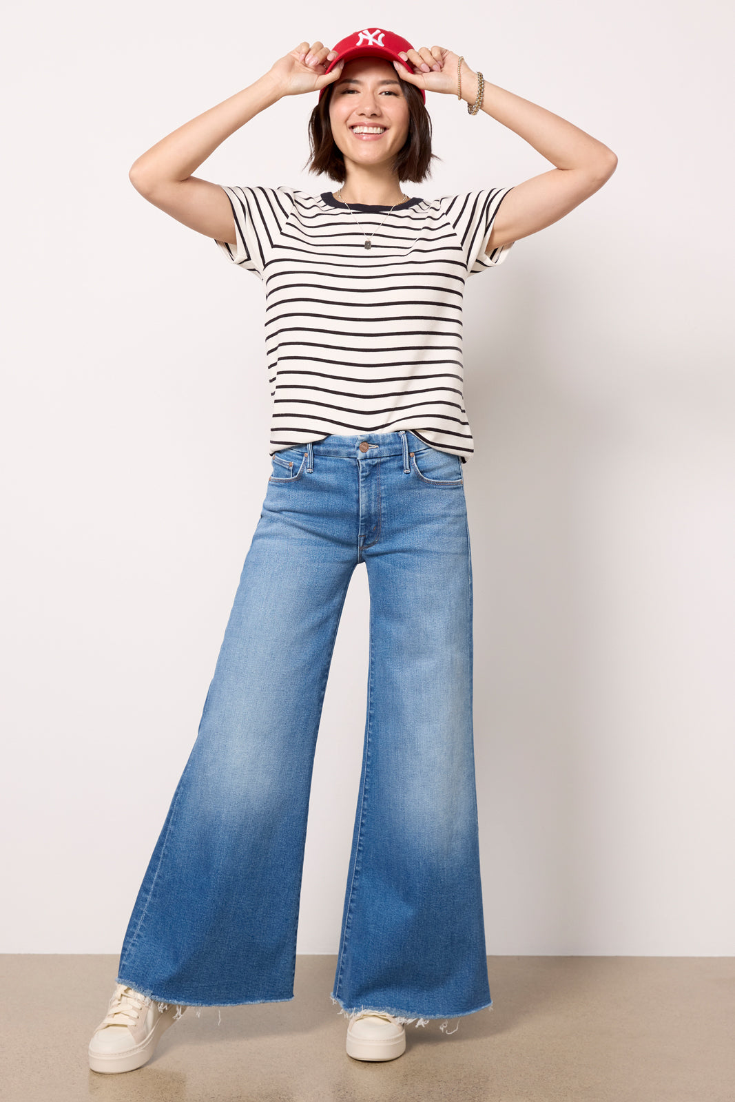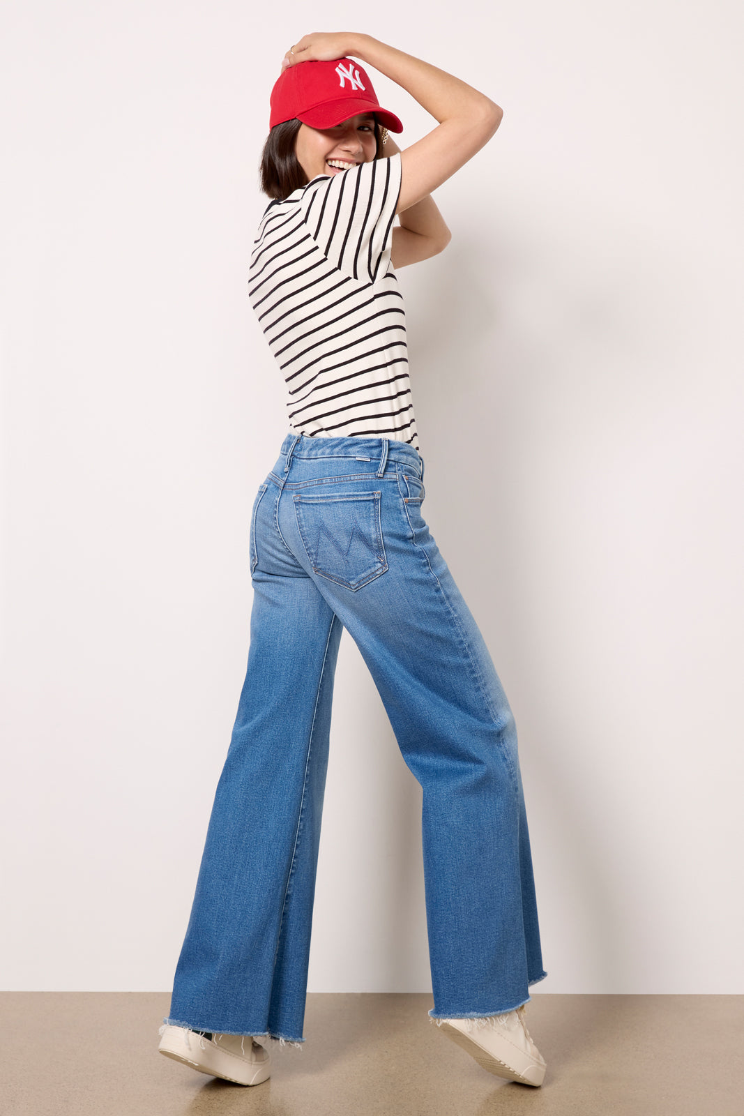 The Lil Roller Fray jean by MOTHER is a petite wide leg silhouette. crafted in soft stretch denim with a full-length leg and raw hems. Designed to complement petite body types. these jeans feature a higher knee placement. shorter inseam. and shorter rise for a perfect. always-flattering fit.