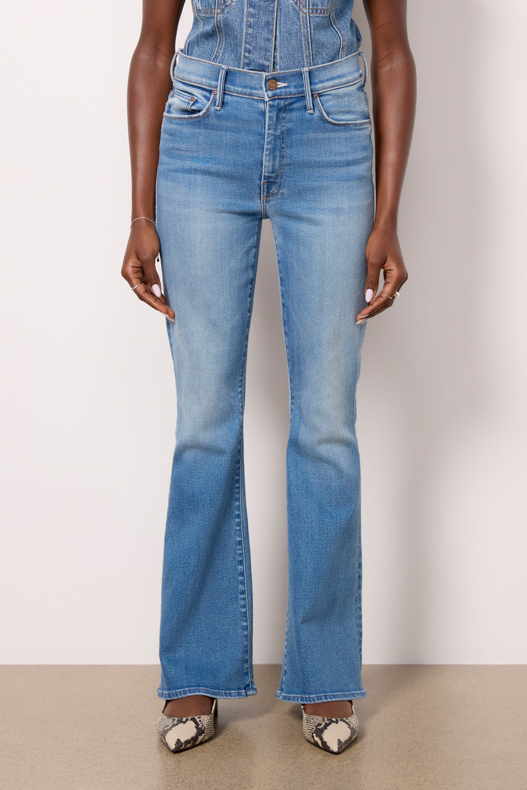 The Lil Weekender is a petite version of MOTHER’s signature flared jean. featuring a full-length leg. mid-rise waist. and soft mid-wash denim with a touch of stretch.?Designed to complement petite body types. these jeans feature a higher knee placement. shorter inseam. and shorter rise for a perfect. always-flattering fit.