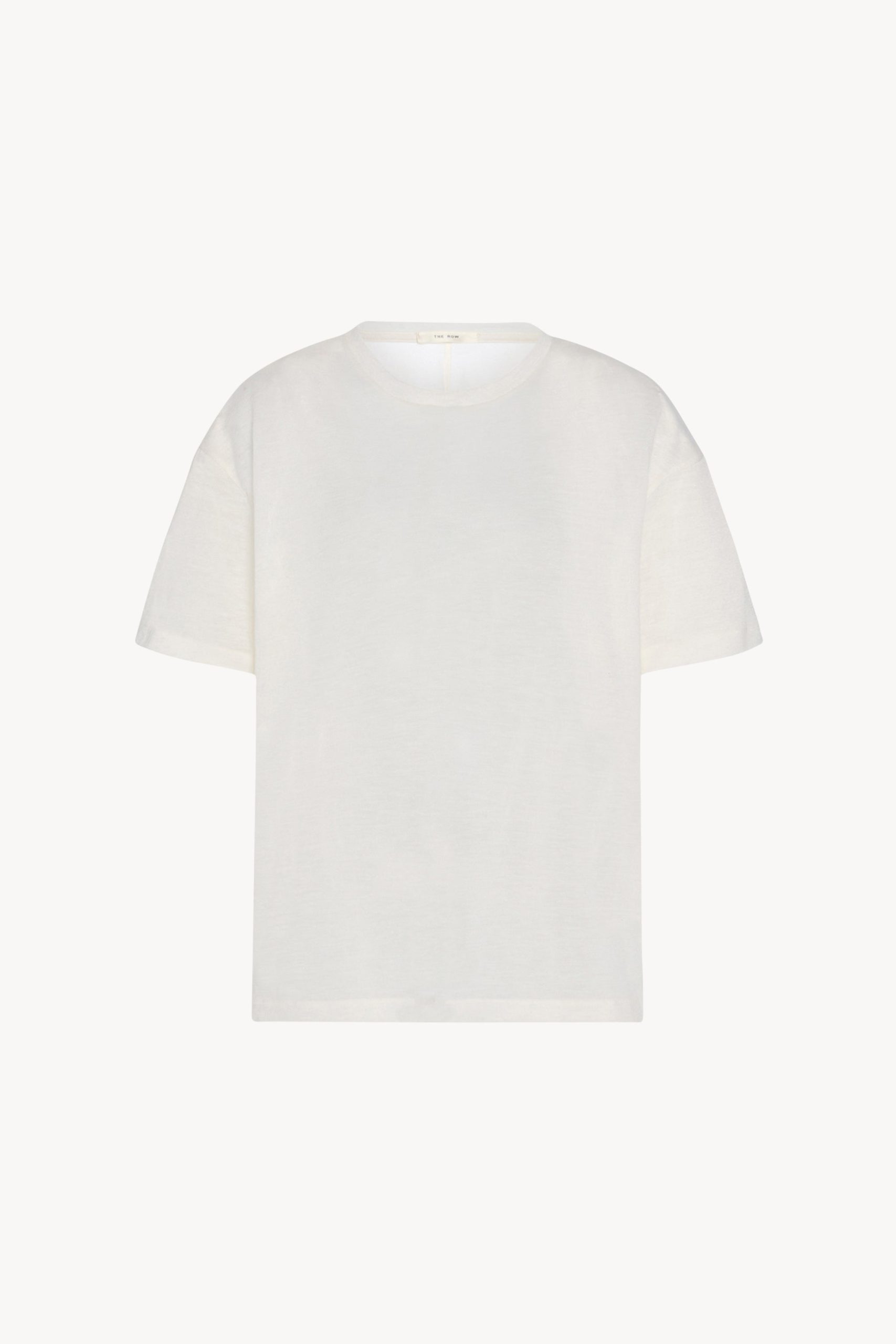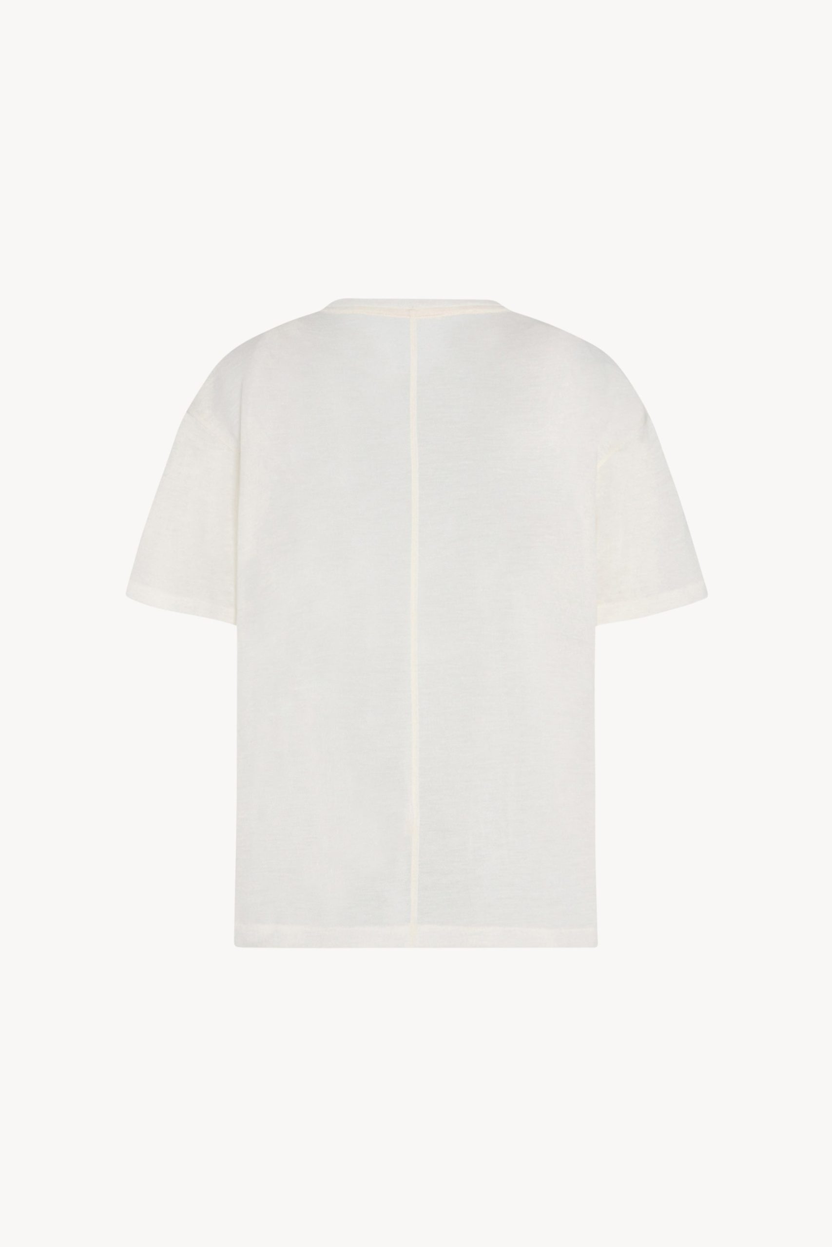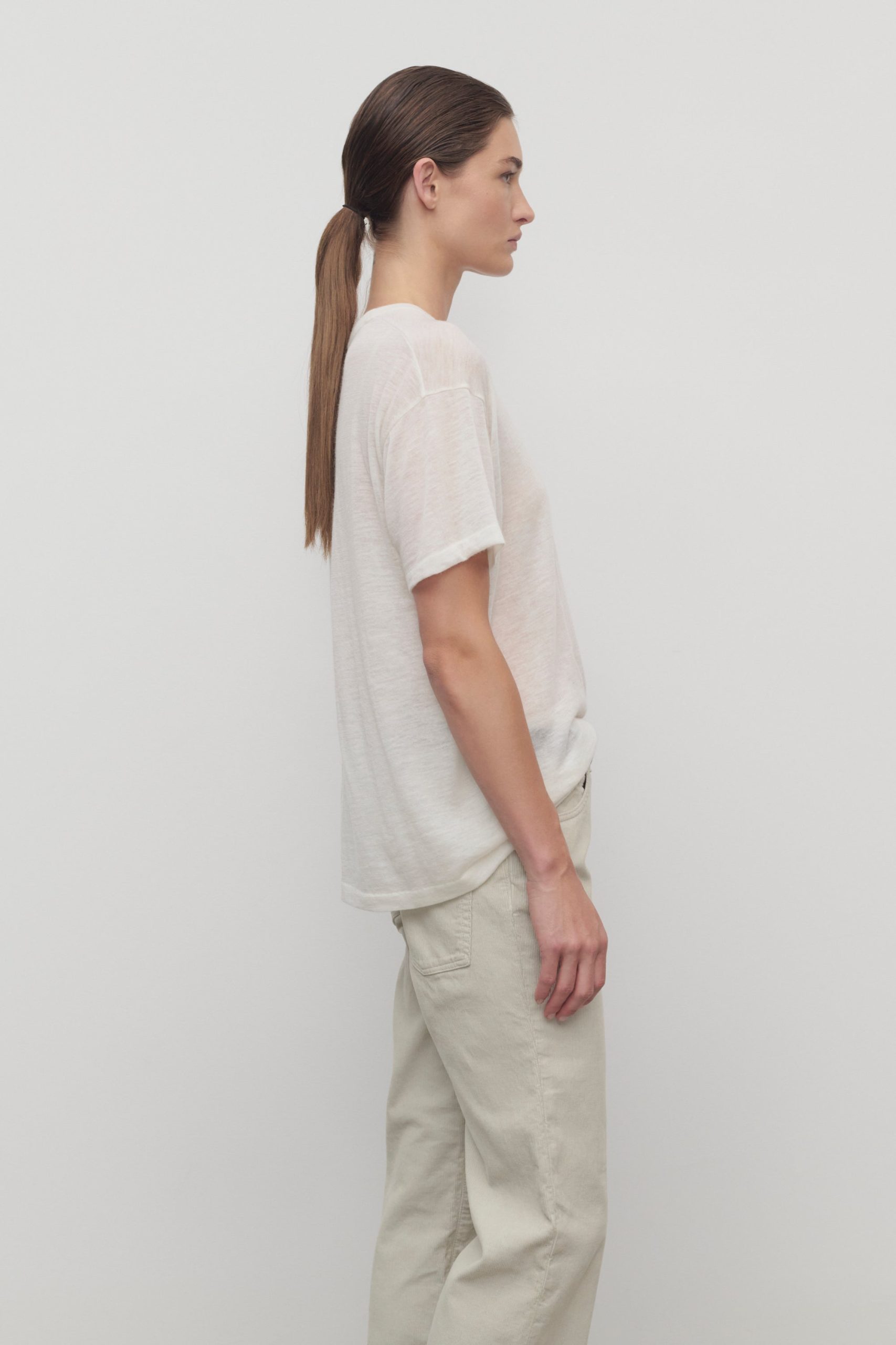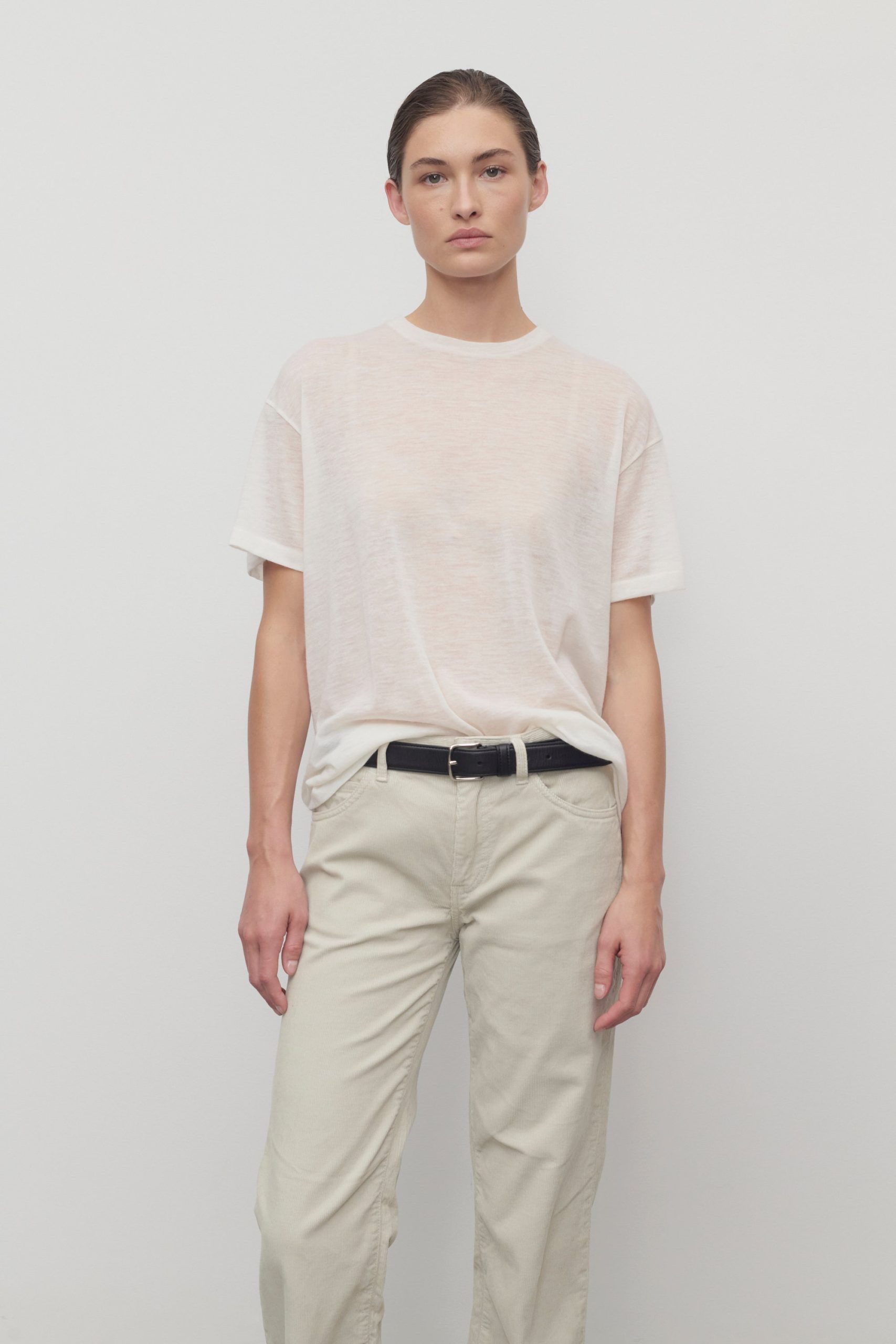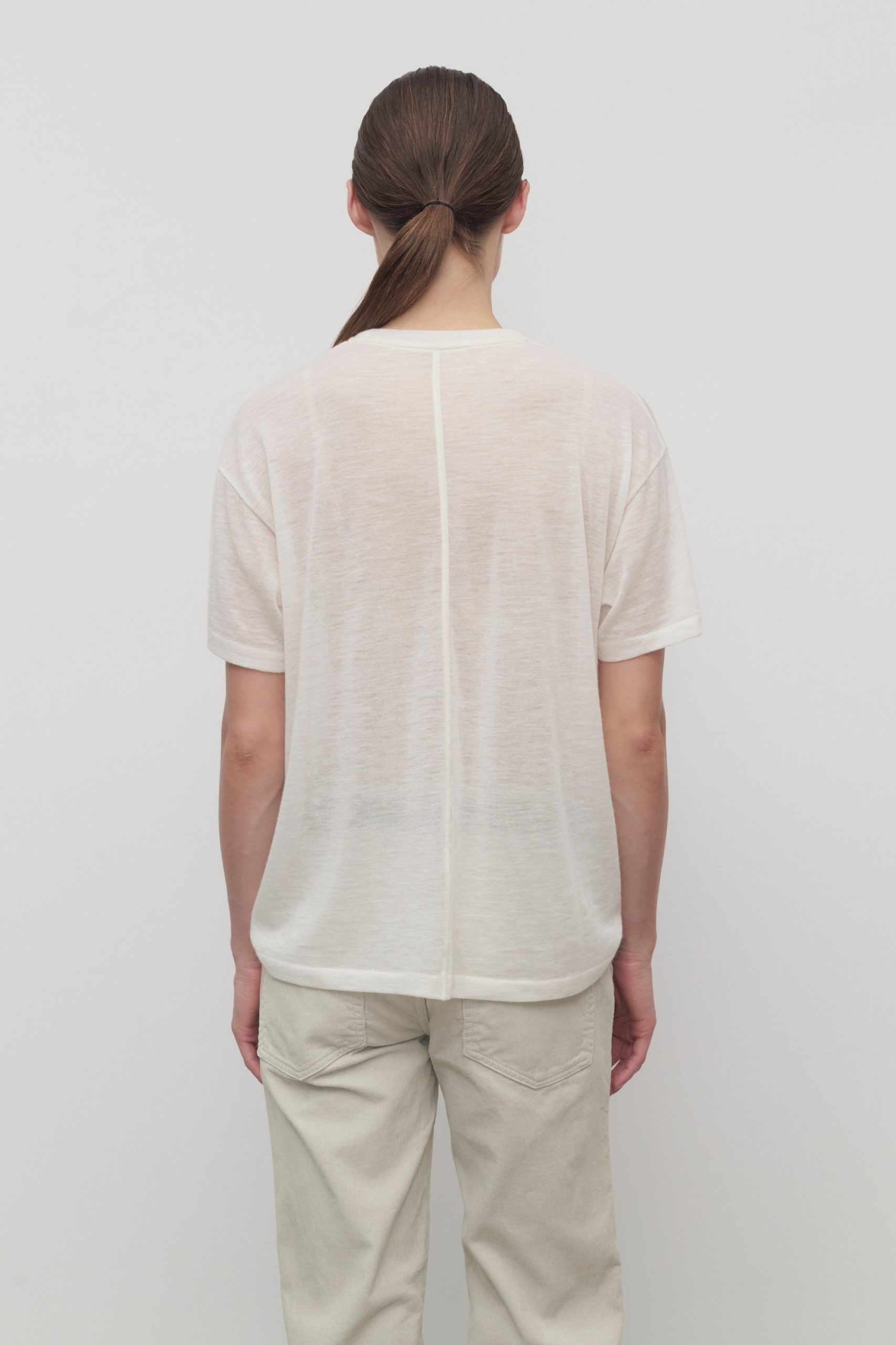 Relaxed. short-sleeved t-shirt in soft cashmere jersey with ribbed crewneck and signature center back detail.