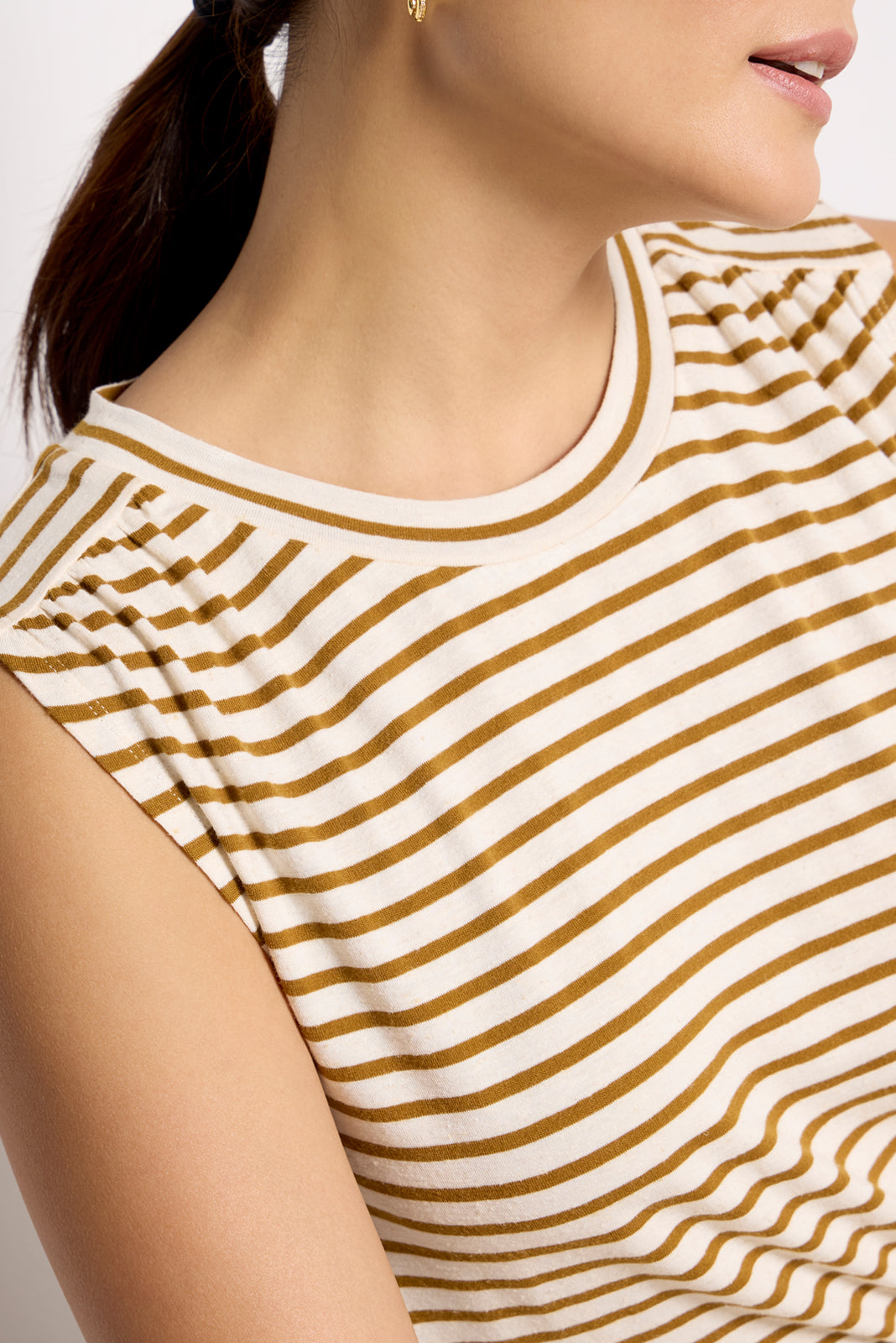 Finished in soft. lightweight fabric. this versatile striped muscle tank by EVEREVE features a relaxed crewneck silhouette with a shirred shoulder detail for an elevated touch.