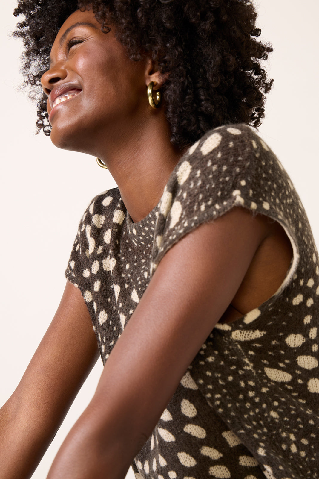 A subtle animal print defines the Loma Sweater by LNA. featuring a crew neckline. cap sleeves. and a slightly cropped silhouette.