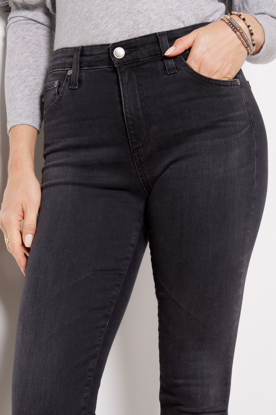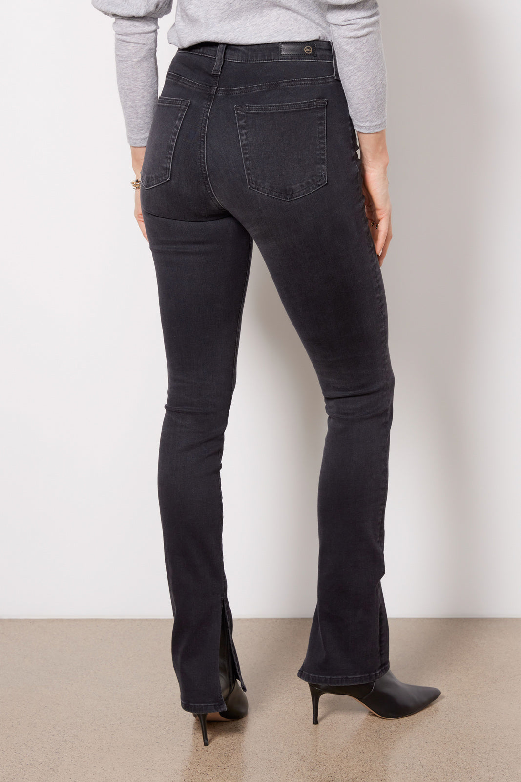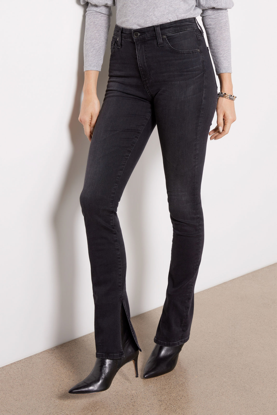 A flattering full-length leg creates the sleek silhouette of these slim-straight jeans by AG. finished in soft stretch denim with a high-rise fit and versatile black wash. The split hems make it easy to show off your shoe game.