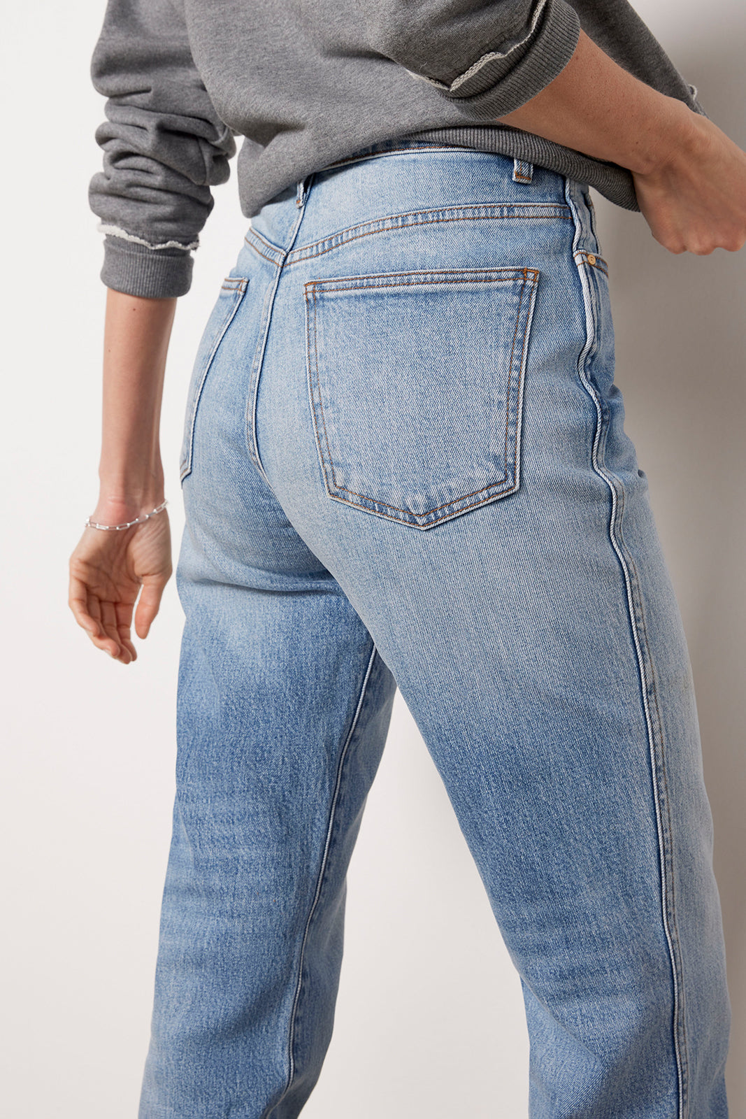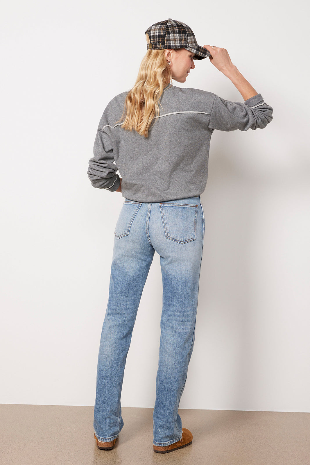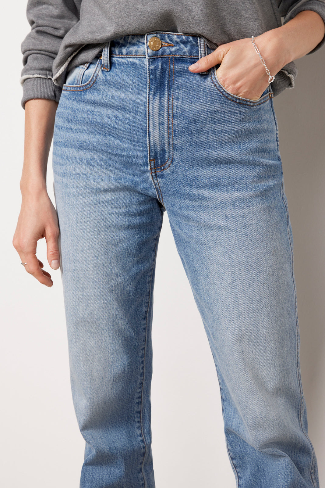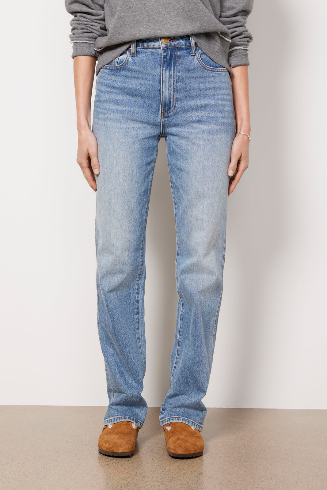 A wear-everywhere denim staple. the Melissa Straight jean by Kut From The Kloth features a full-length inseam. high-rise waist. and a medium dark blue wash. You’ll love them paired with a?crewneck sweatshirt?or dressed up with a blouse and heels.?
