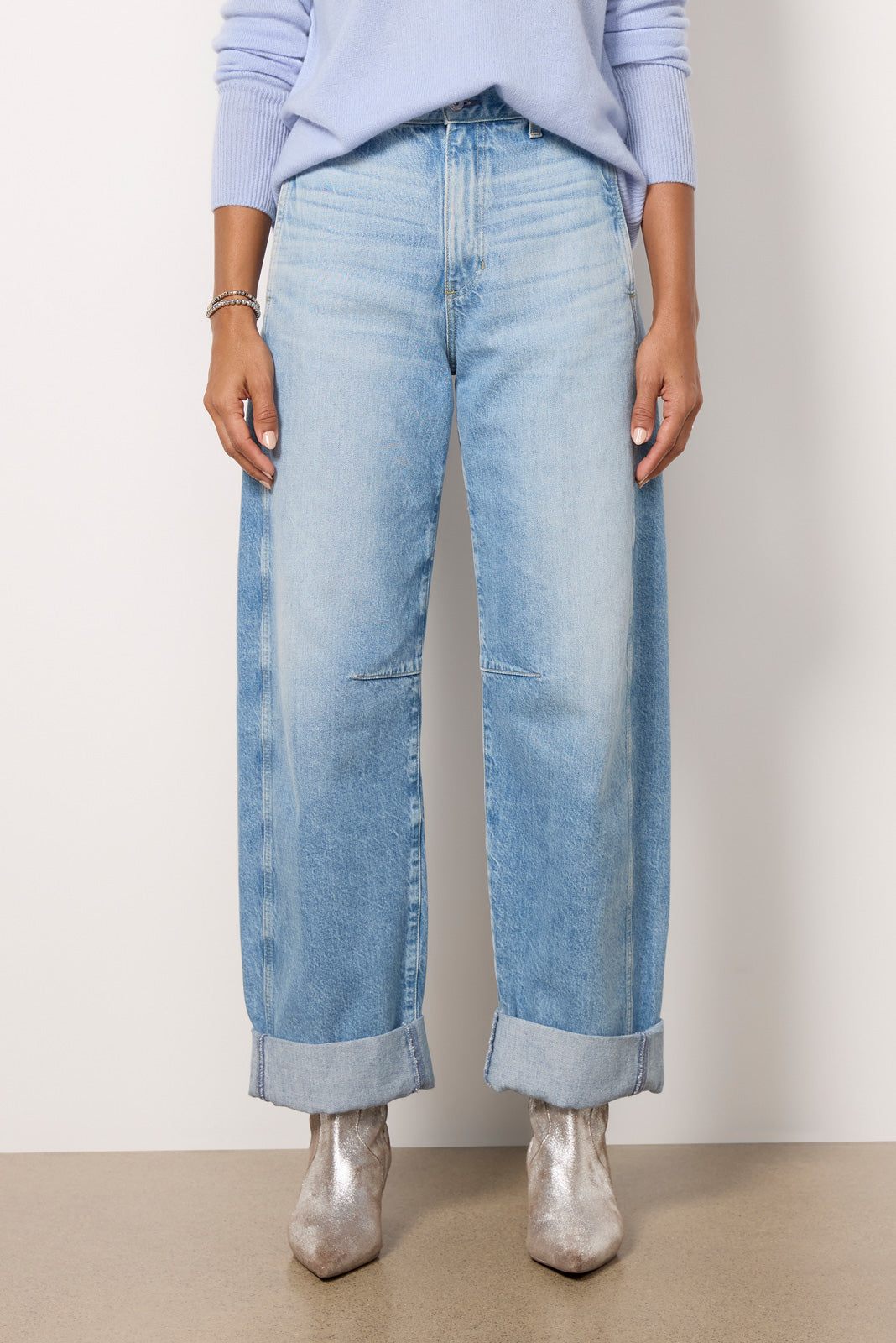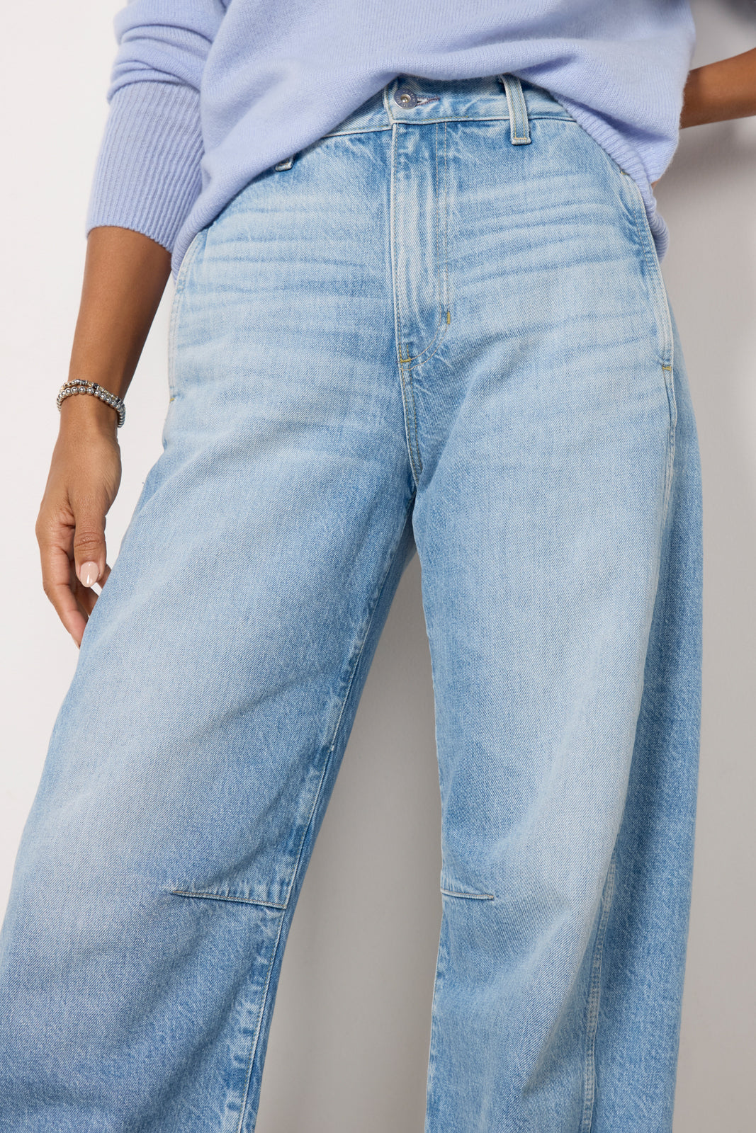 These stylish barrel jeans by AG are the perfect addition to your denim collection. Finished in rigid cotton. these cuffed jeans feature a high-rise silhouette with a curved leg. side seam pockets. and seamed detailing at the knee.
