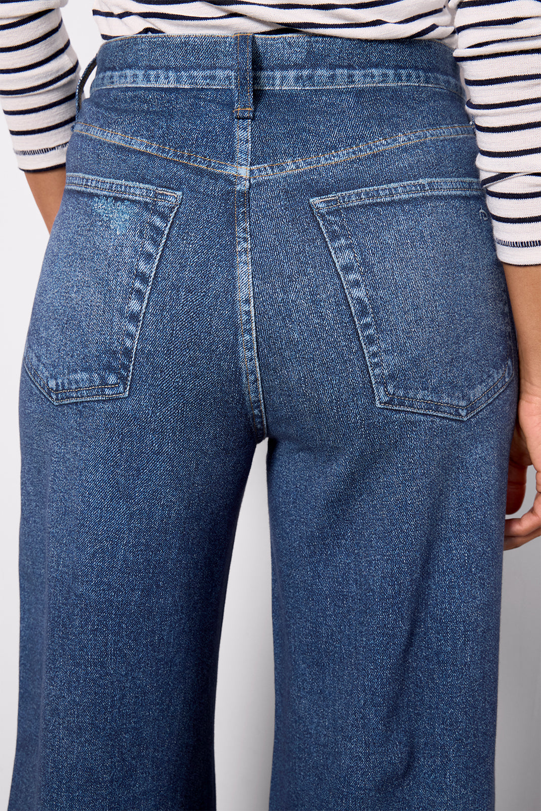 These wide leg pants by rag & bone are crafted in their signature Miramar fabric. a super-soft cotton terry that looks like denim but feels like your favorite lounge bottoms. They feature a high-rise waist.?functional belt loops. front scoop pockets. a zip fly. and a button closure.?