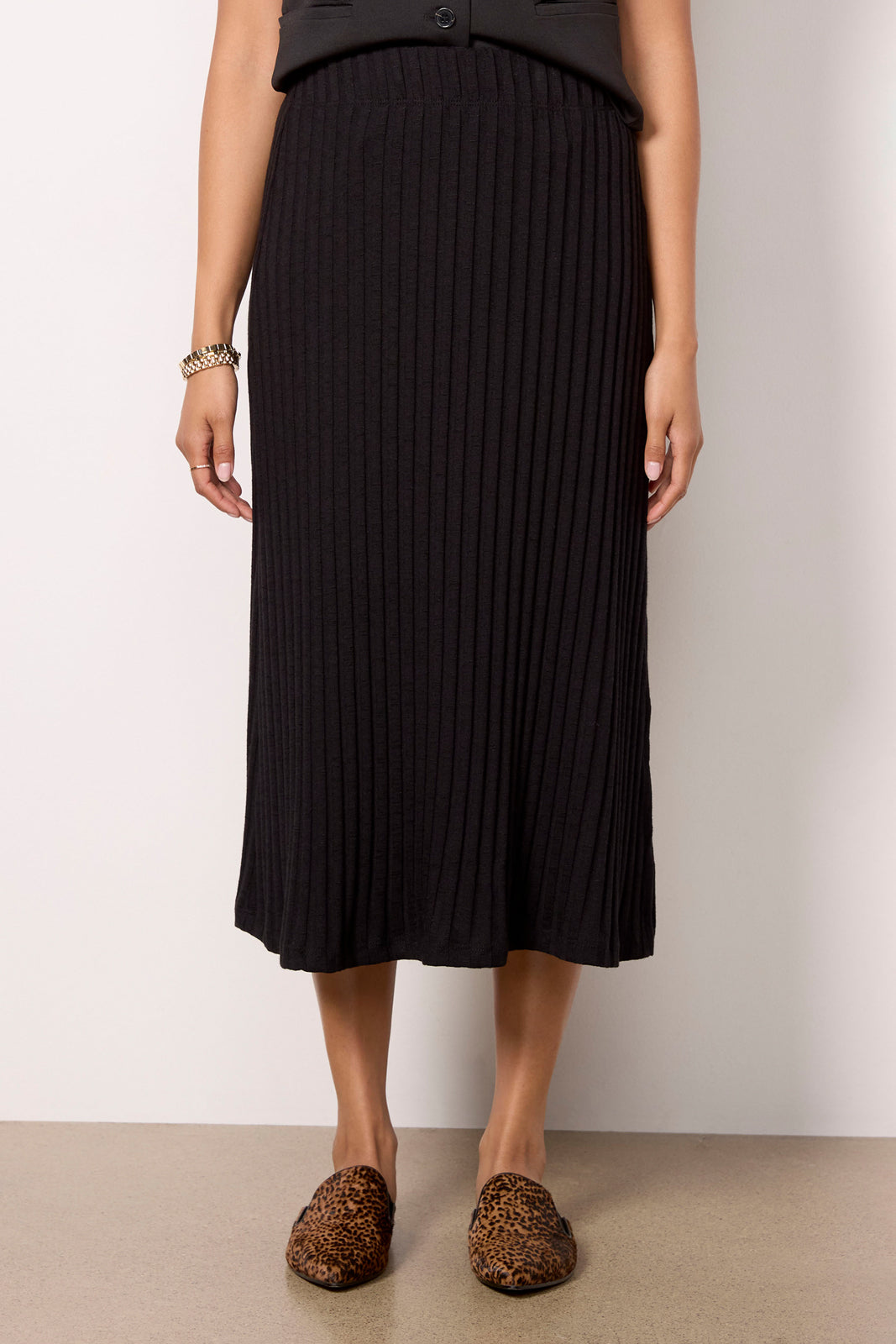 Chic and versatile. this Michael Stars midi skirt is crafted in soft rib knit fabric with a side slit detail and easy pull-on waist. Pair it with everything from a vest and mules to a graphic tee and sneakers.