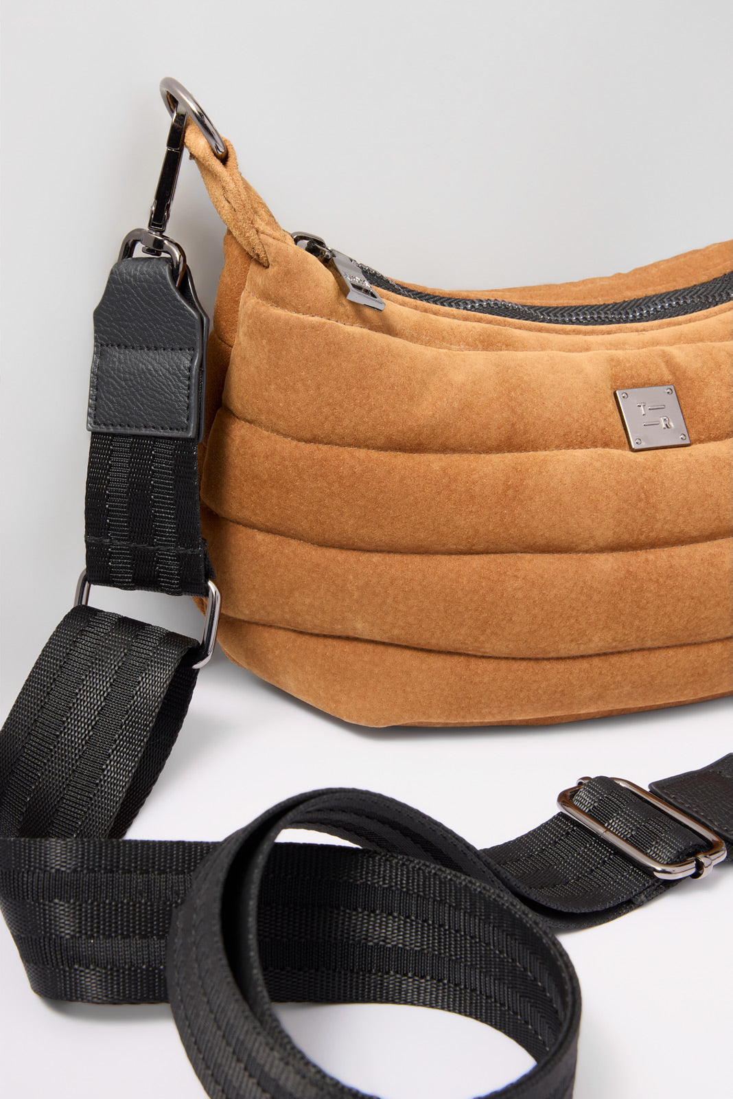 Crafted in soft. luxe suede. the Moon Goddess Bag by Think Royln features a top zip closure and two detachable strap options??a?metal chain?strap to wear on the shoulder or an adjustable crossbody strap to go hands-free.