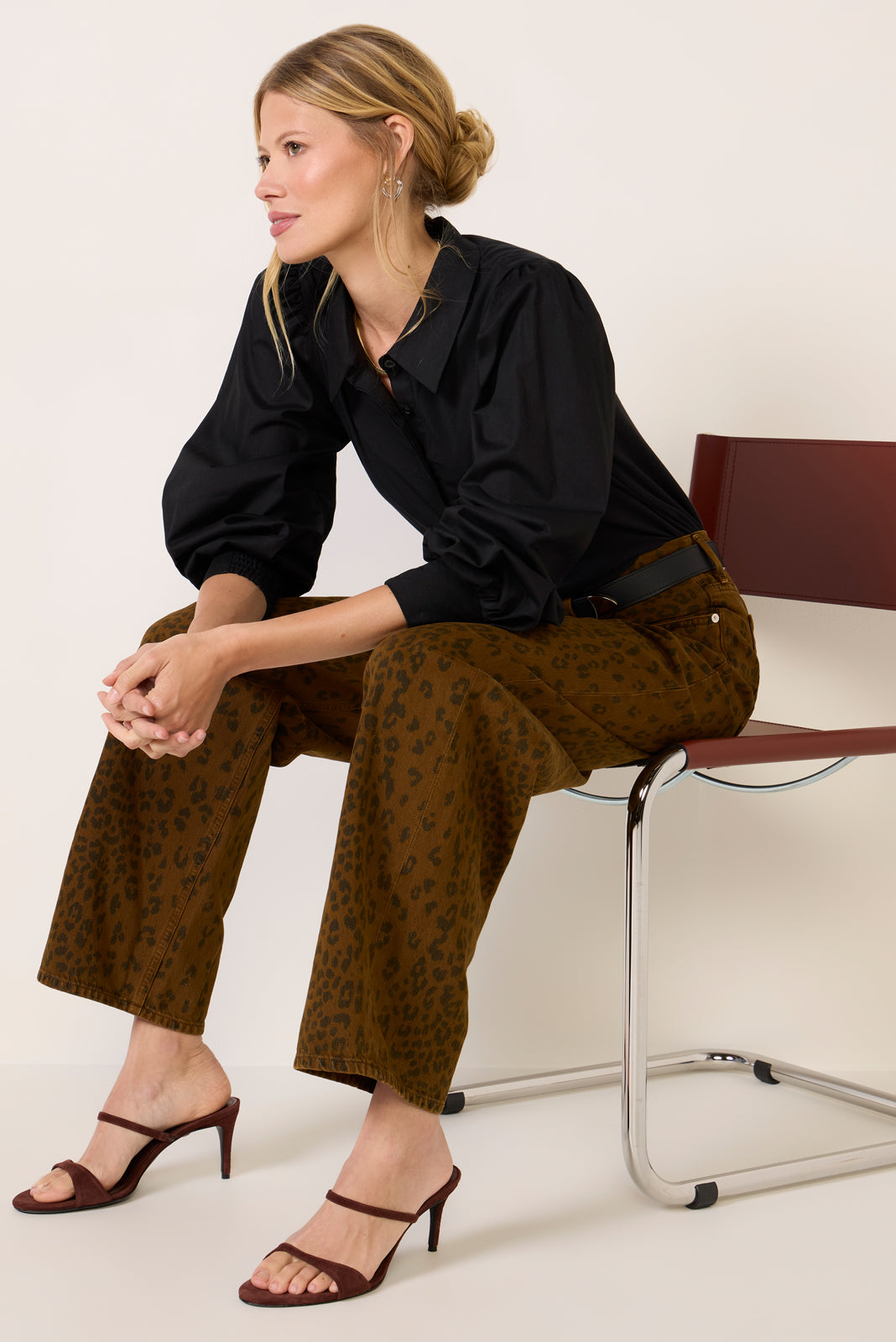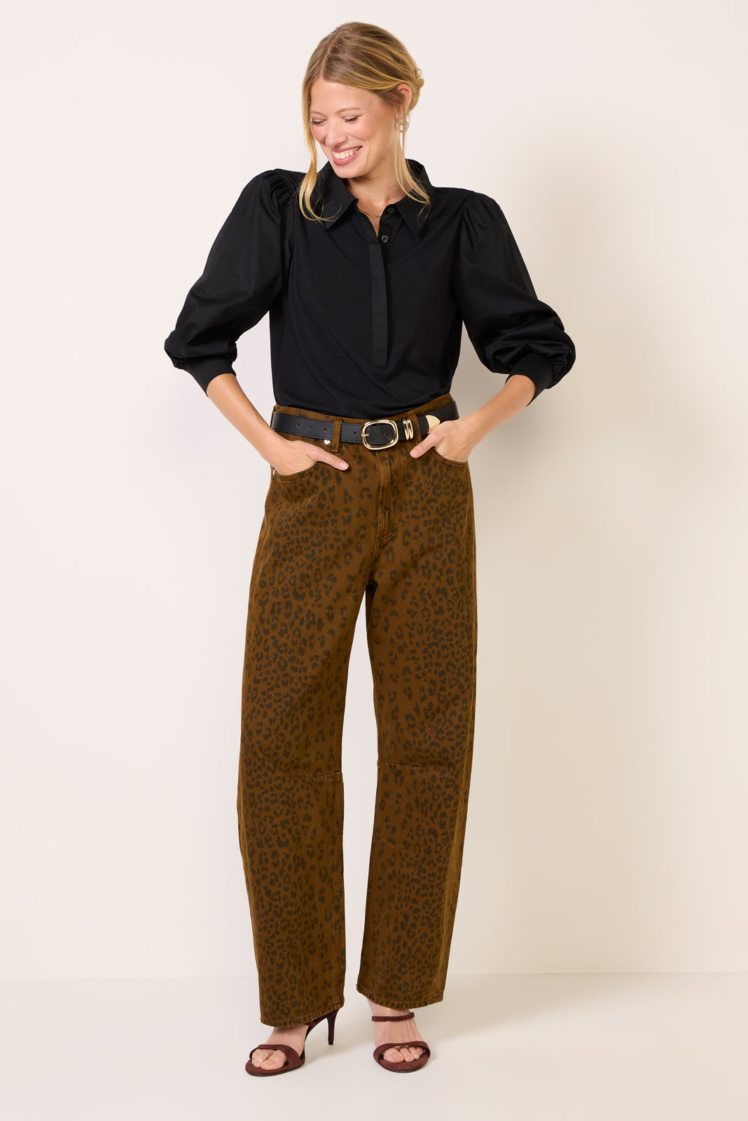 Upgrade your workwear wardrobe with the Nelly Mixed Media Top by EVEREVE. featuring a classic collar. half front button placket. long sleeves with gathering at the shoulders. and smocking details at the cuffs.?