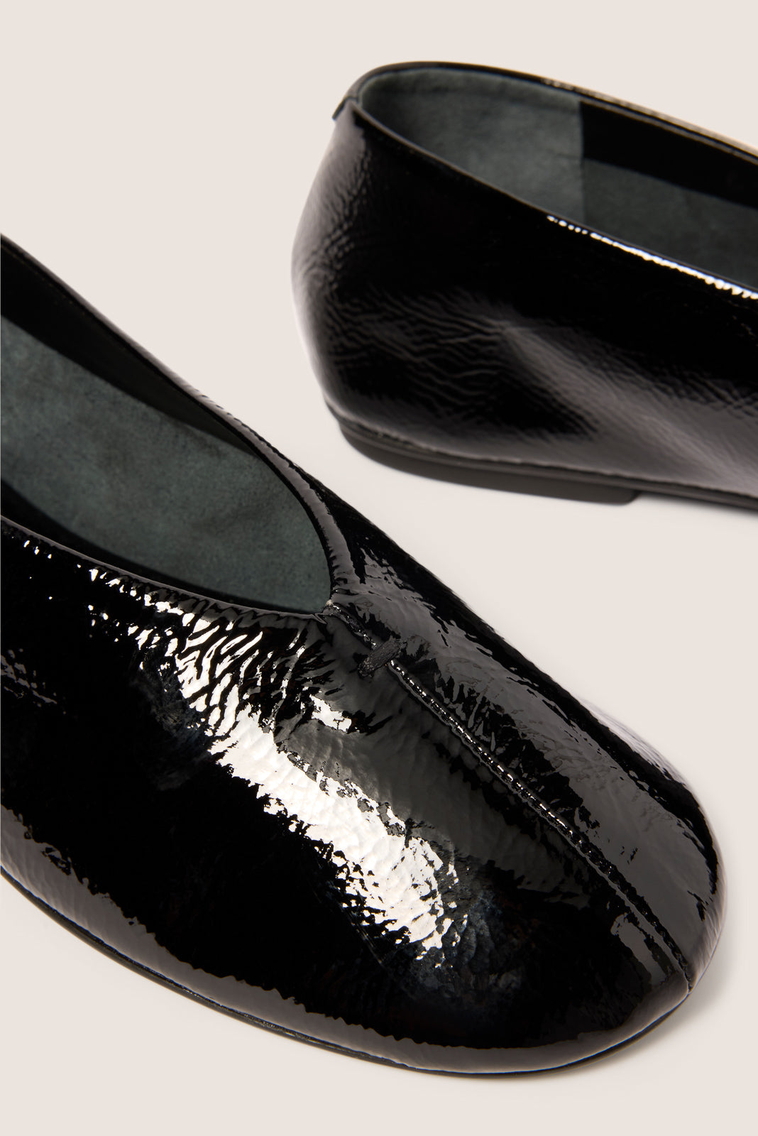 Complete any look with these chic ballet flats by Schutz. crafted from?glossy patent leather with a V-shaped vamp and round toe.