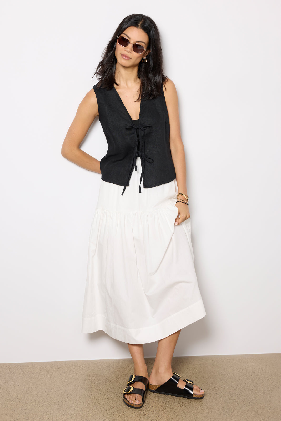 Crafted in luxe linen. the Oregon Top by Rails features a vest silhouette with tie front closures and a relaxed fit.?
