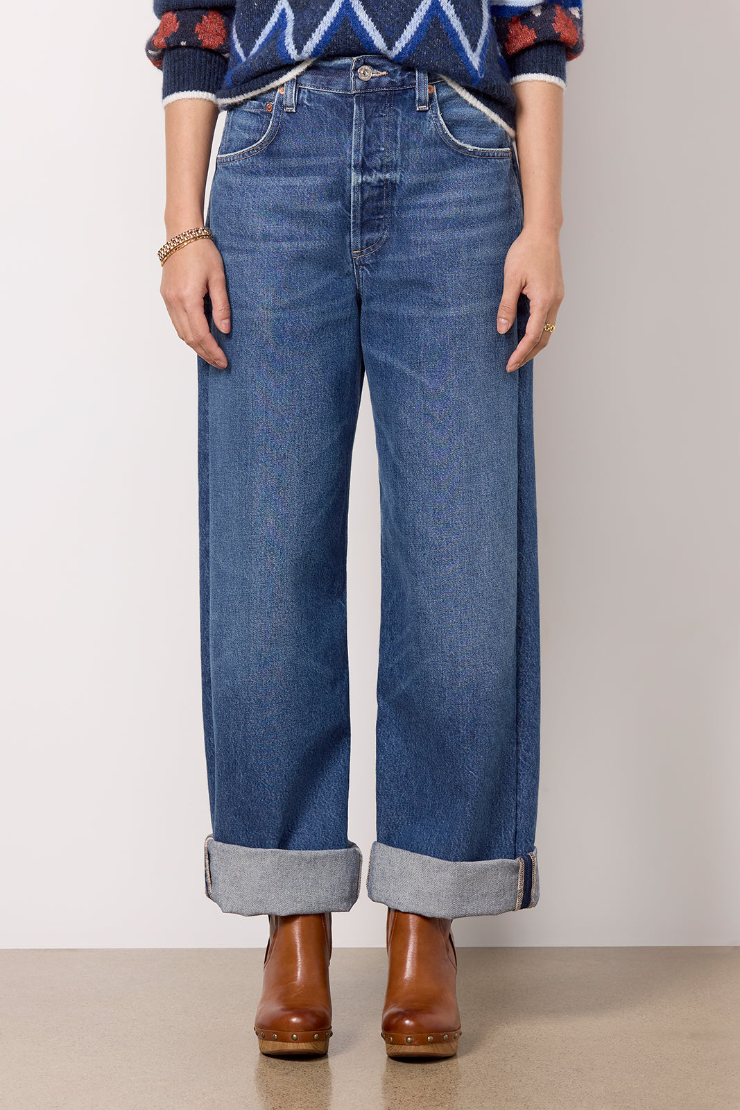 An ultra-relaxed fit defines these stylish wide leg jeans by Citizens of Humanity. Designed with a shorter inseam for petite frames. the Ayla is crafted in non-stretch?regenerative cotton denim with a button fly closure and rolled hems that can be worn uncuffed for a full-length look. Wear them from day to night with sneakers. mules. or pointed-toe pumps.