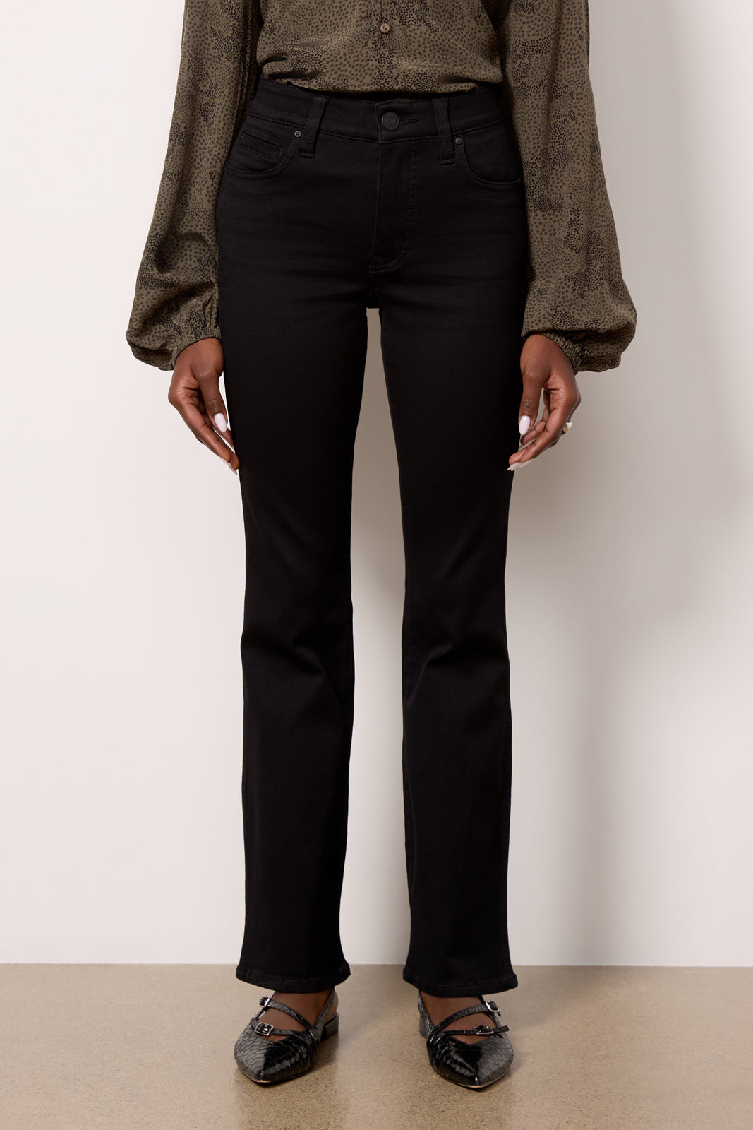 Designed with a petite-friendly fit. the Natalie jean by Kut From The Kloth features a flattering bootcut silhouette with elongating full-length hems. The sleek black denim will take you from day to night in style.
