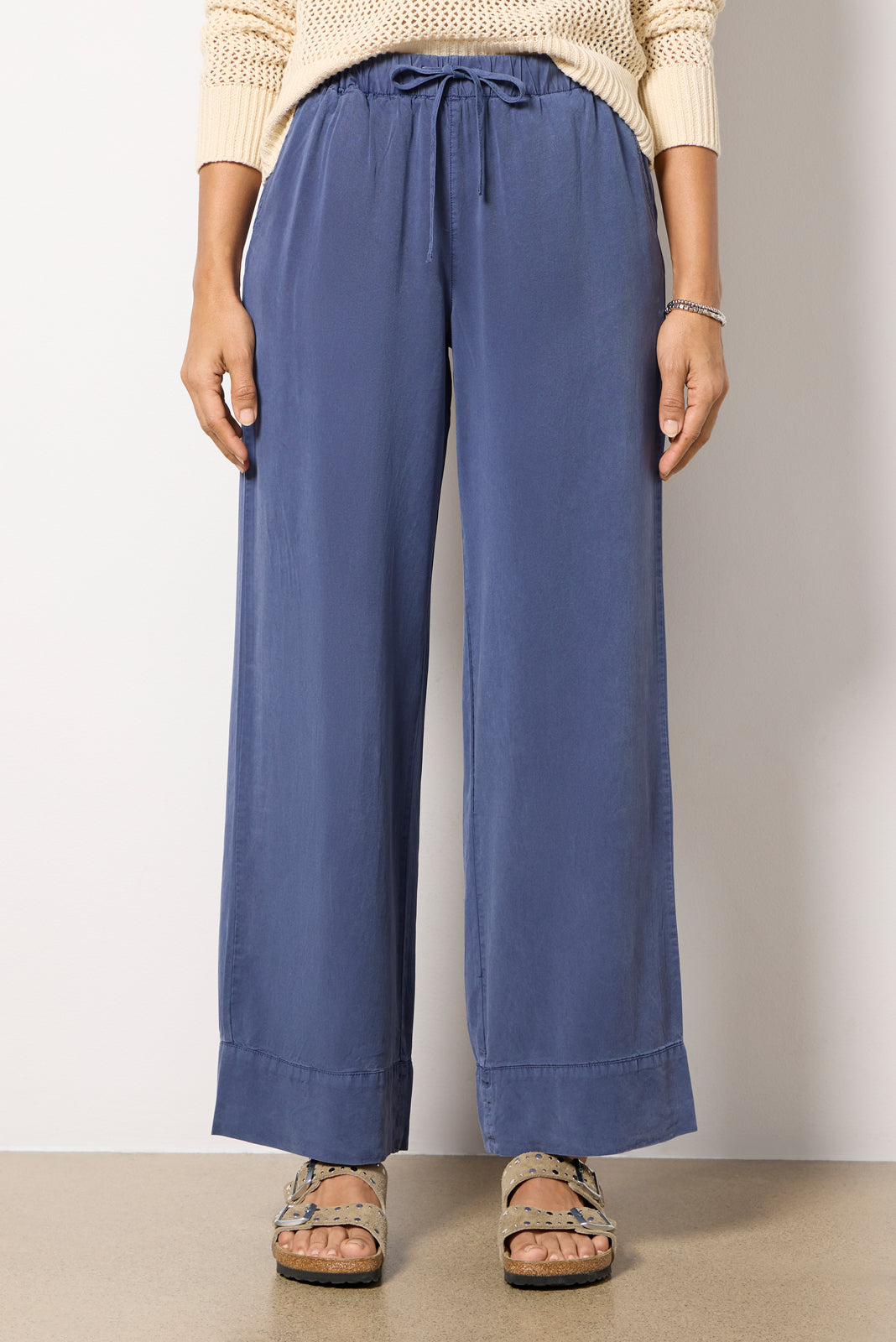 Crafted in a soft twill fabric. the Riley Pant by Alex Mills features an adjustable drawstring waistband. side pockets. a full-length inseam. and a straight-leg silhouette.