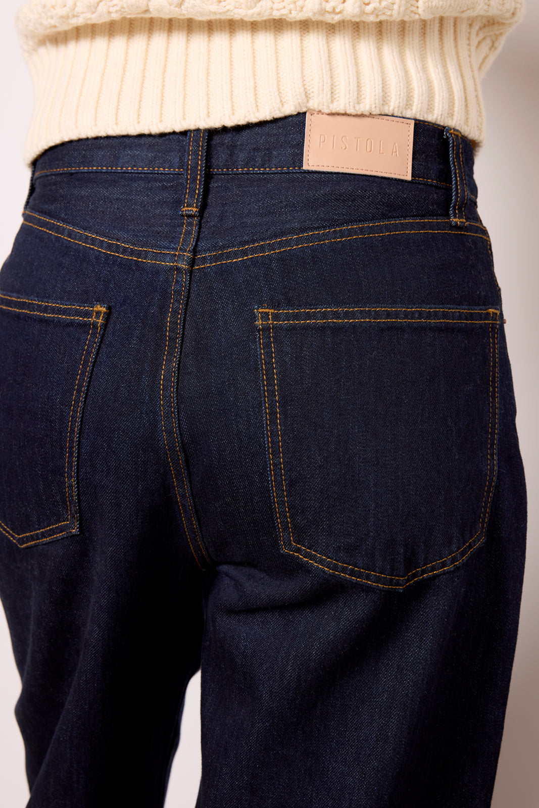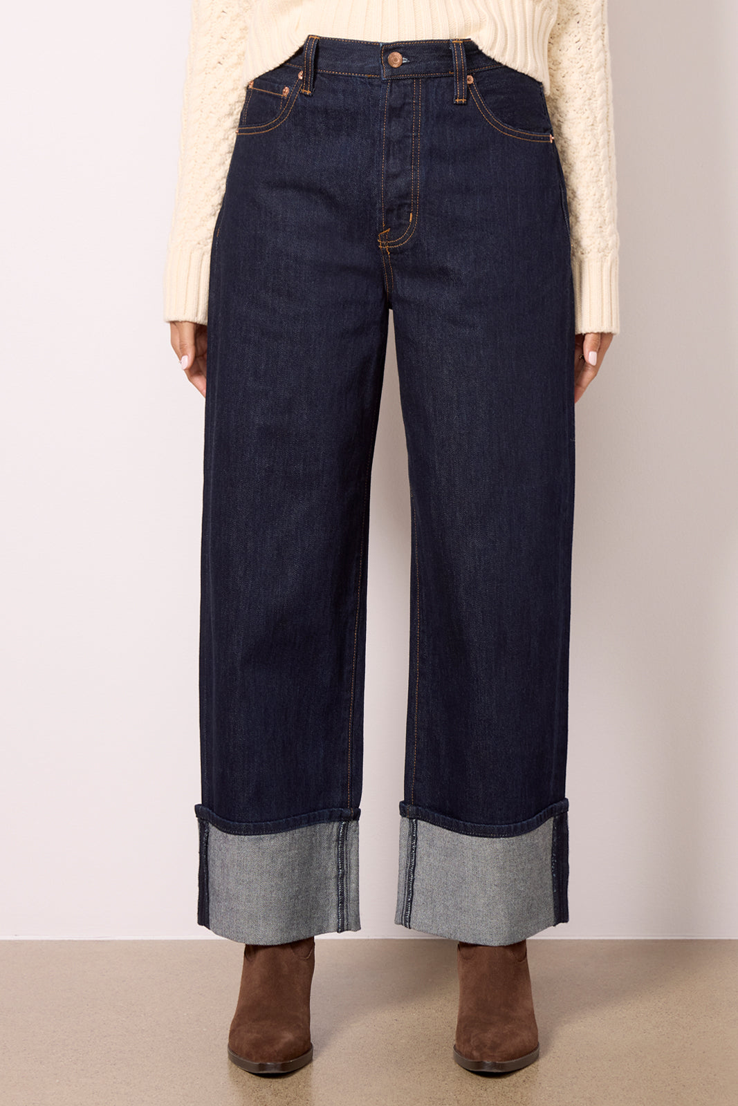 Perfect for day-to-night wear. these stylish wide leg jeans by Pistola are crafted in rigid cotton denim and feature a high-rise waist. cuffed hems. and a deep indigo rinse wash.