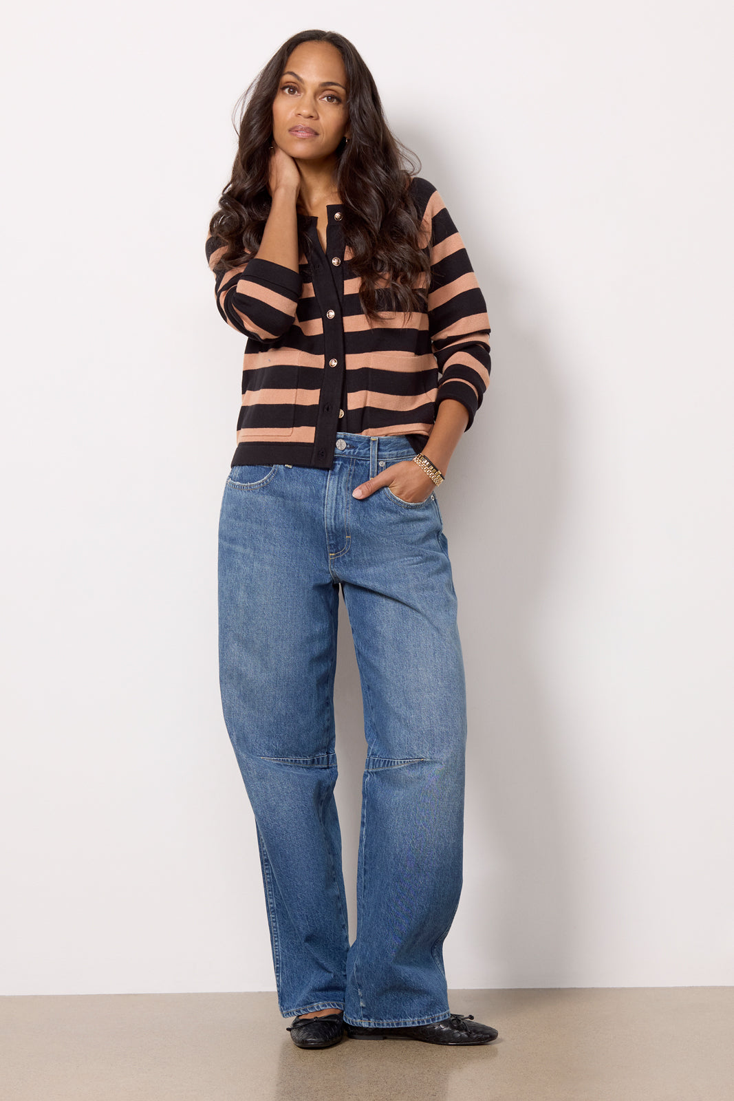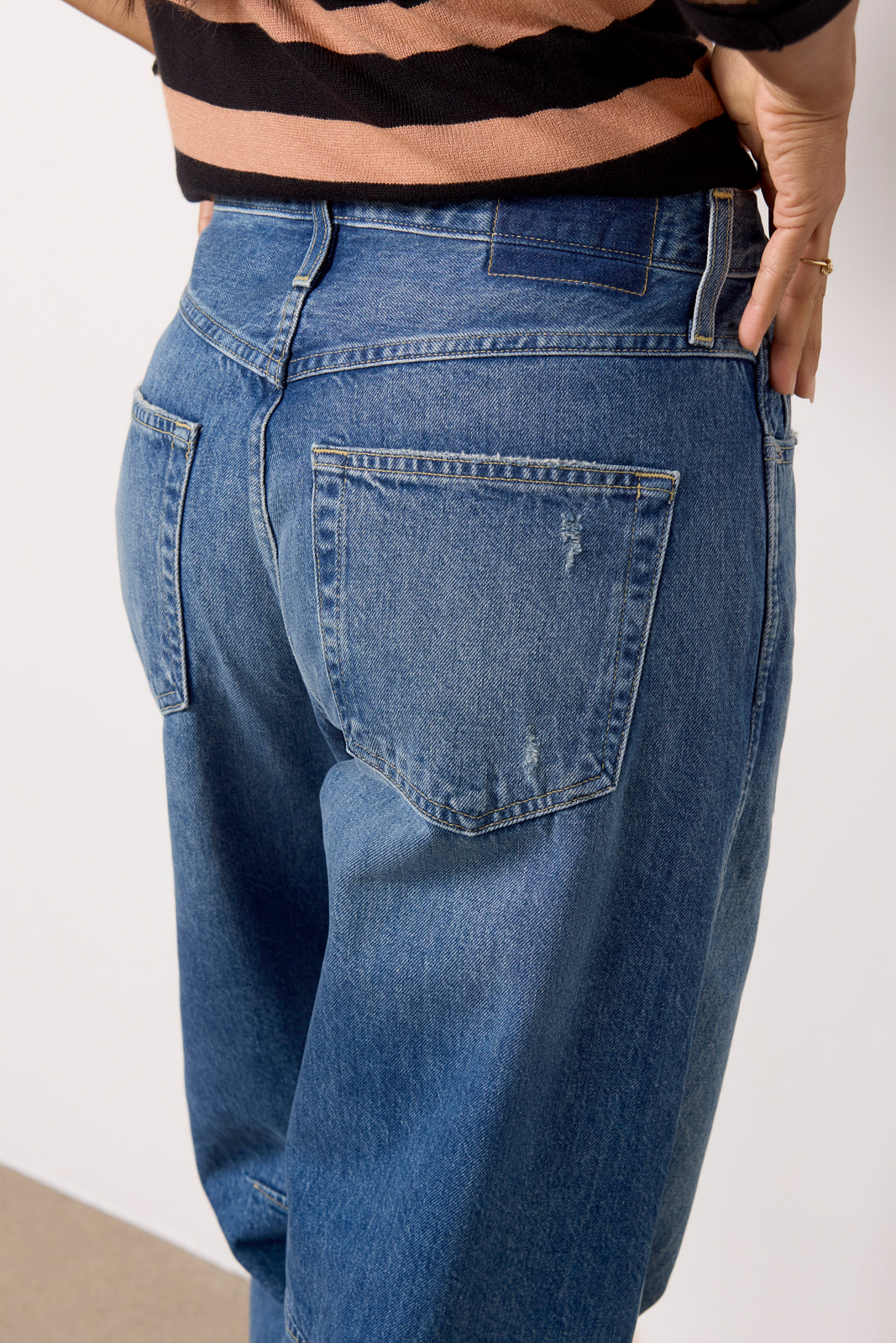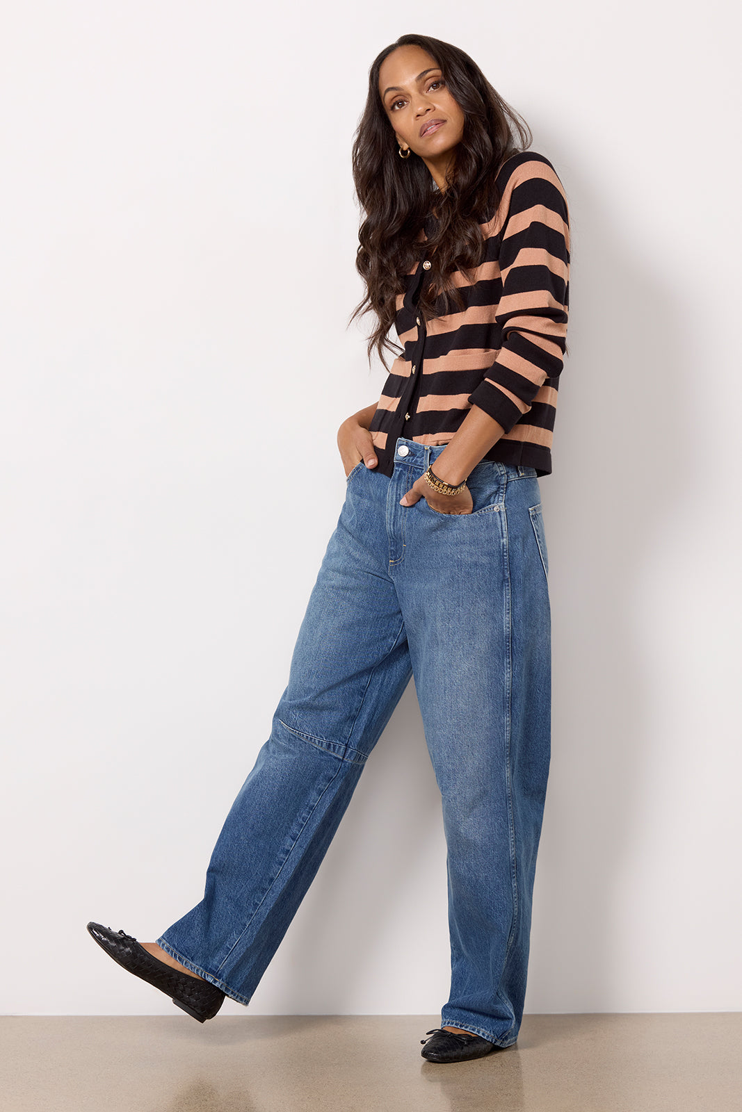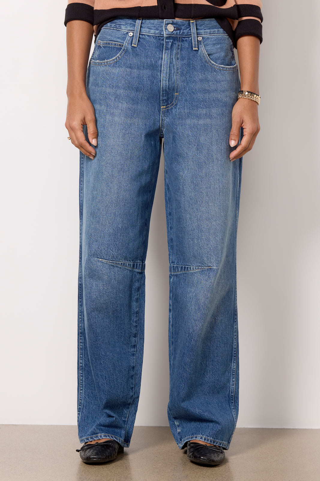 Crafted from premium non-stretch denim. the Sandra Baggy jean by AMO?features a relaxed. full-length wide leg with darting details for a slightly curved shape. They’re designed to sit low on the hips for an easy. effortless feel.