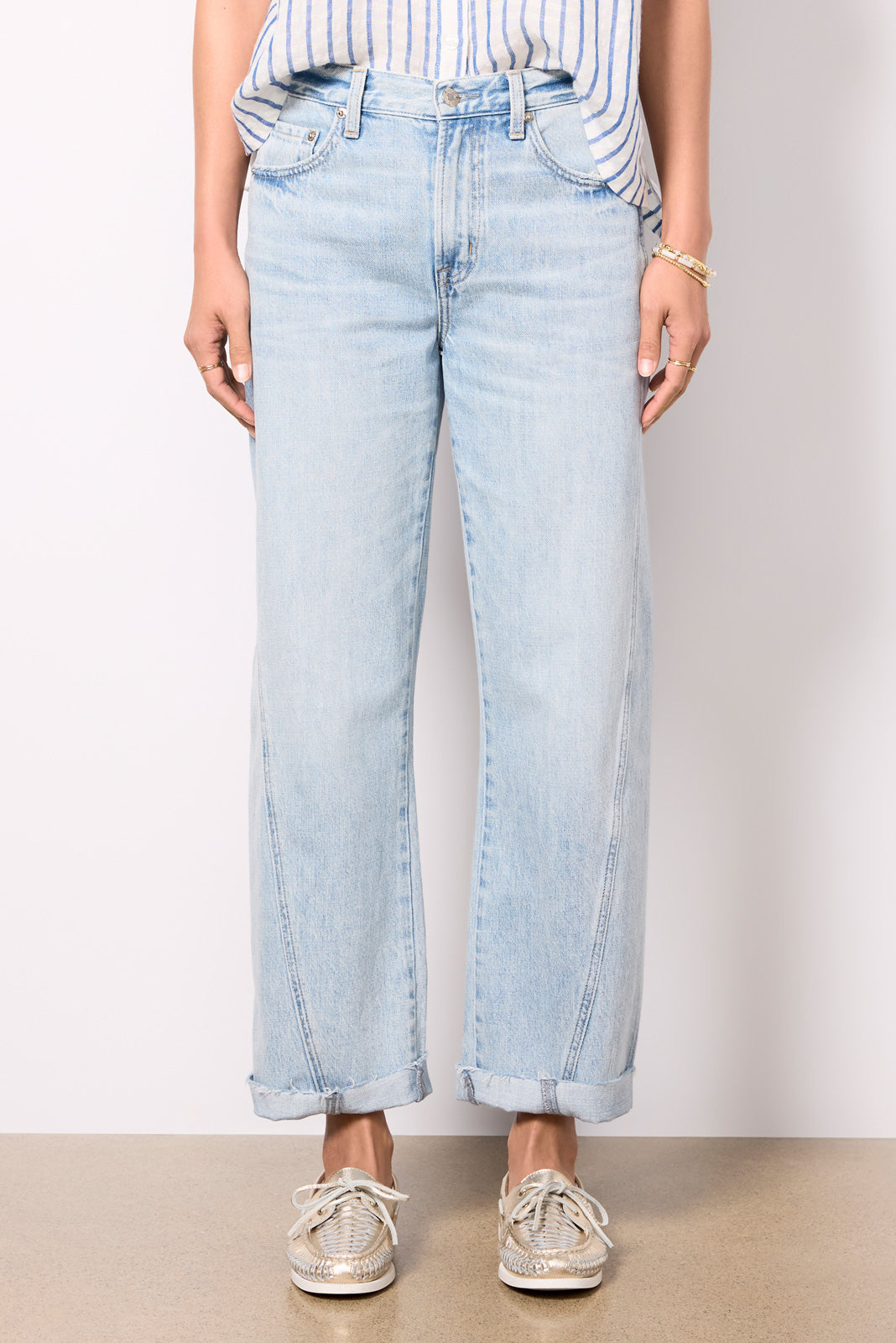The Kacey?Seamed Jean from Pistola?will be?your new go-to for effortless style and comfort. Crafted in non-stretch cotton denim. this jean features a mid-rise fit. a straight leg silhouette. and a front seam detail.?