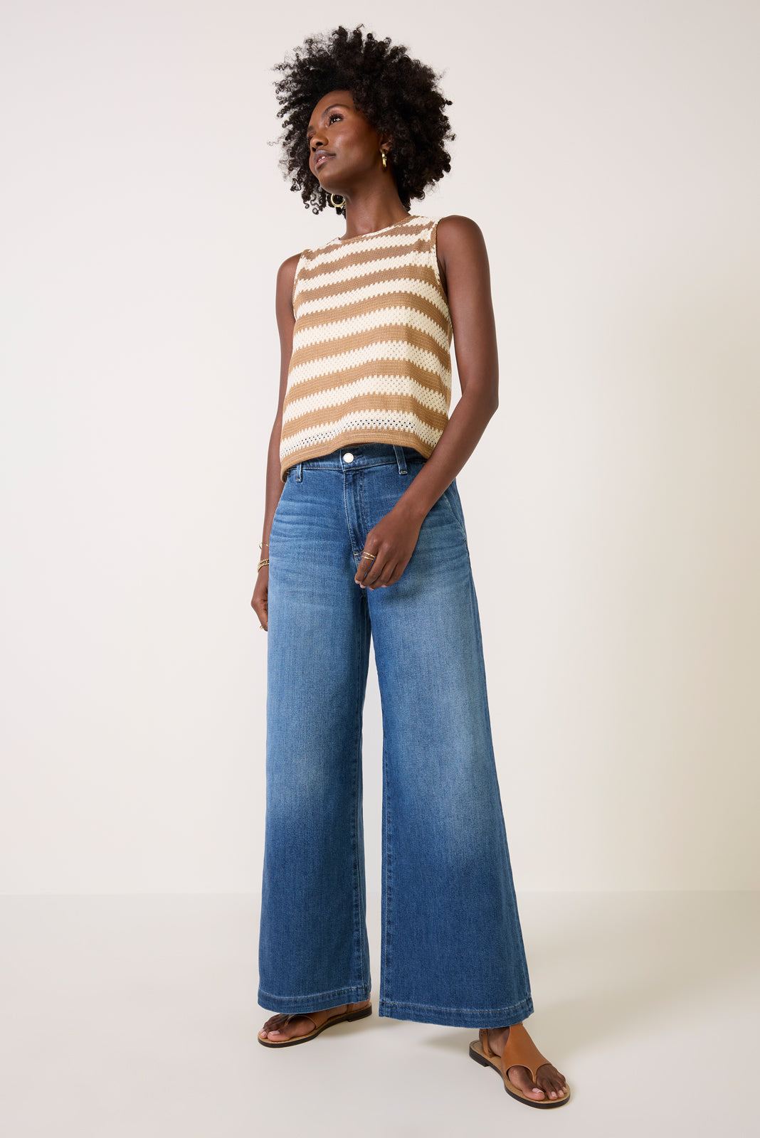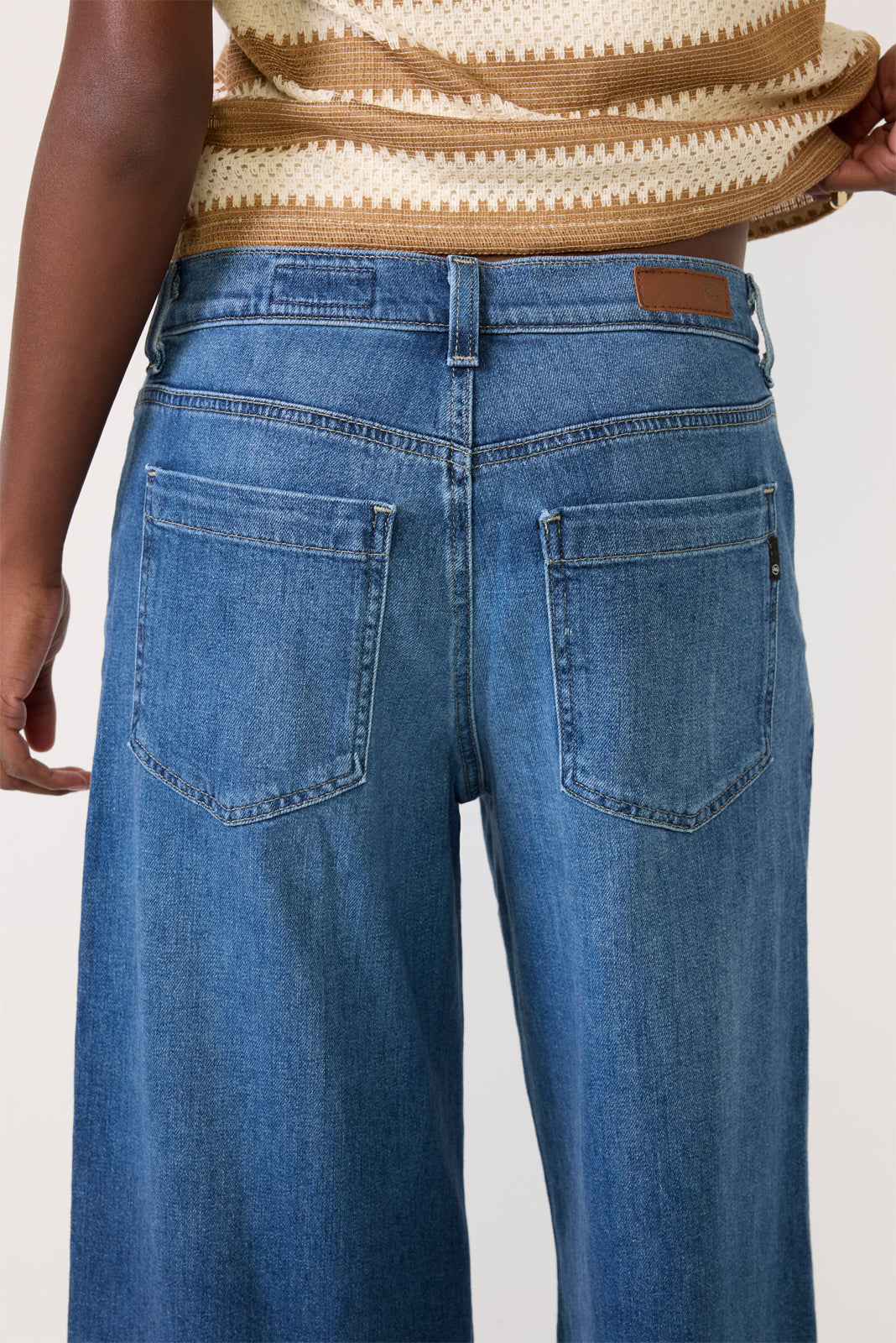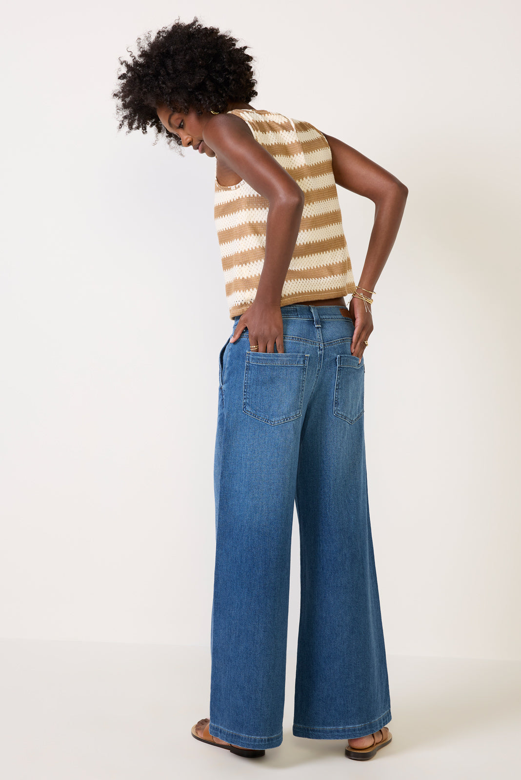Finished in soft Japanese stretch denim. the Stella wide leg palazzo jean by AG features a relaxed mid-rise silhouette. clean hems. and angled front pockets.