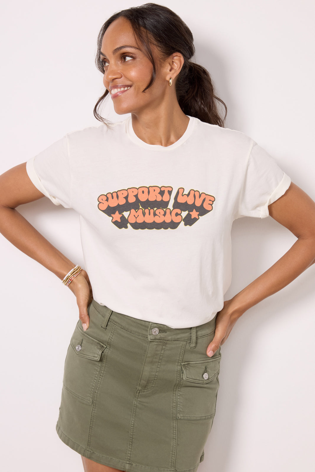 The Support Local Live Music Tee by Retro Brand Black Label is made from vintage cotton. Due to the vintage washing process. expect slight variations in color.?