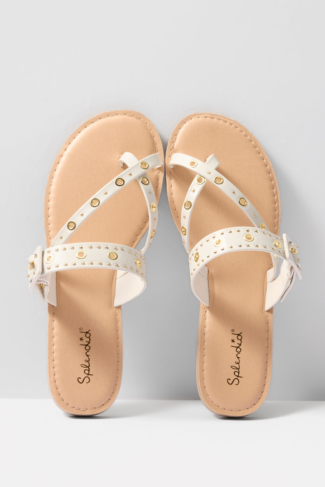 Take any warm-weather look from day to night with the Sutton sandal by Splendid Footwear. These stylish slides feature crossover?leather straps with an adjustable buckle and gold-tone stud details.