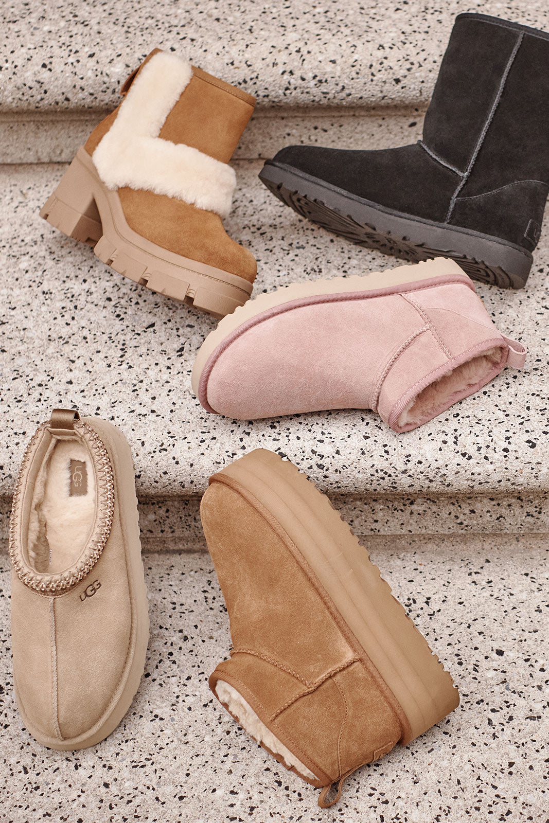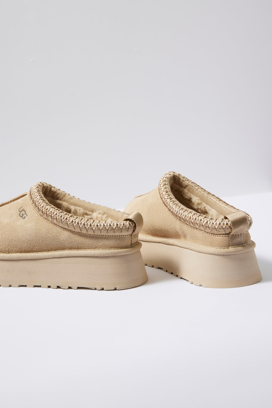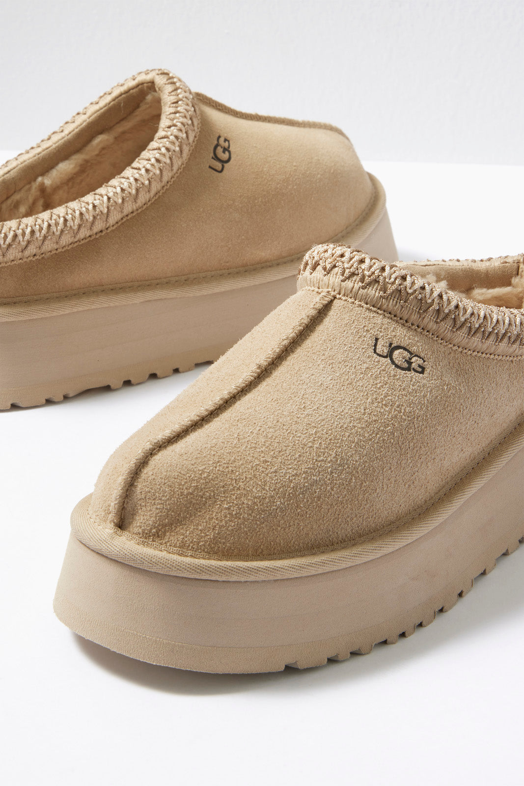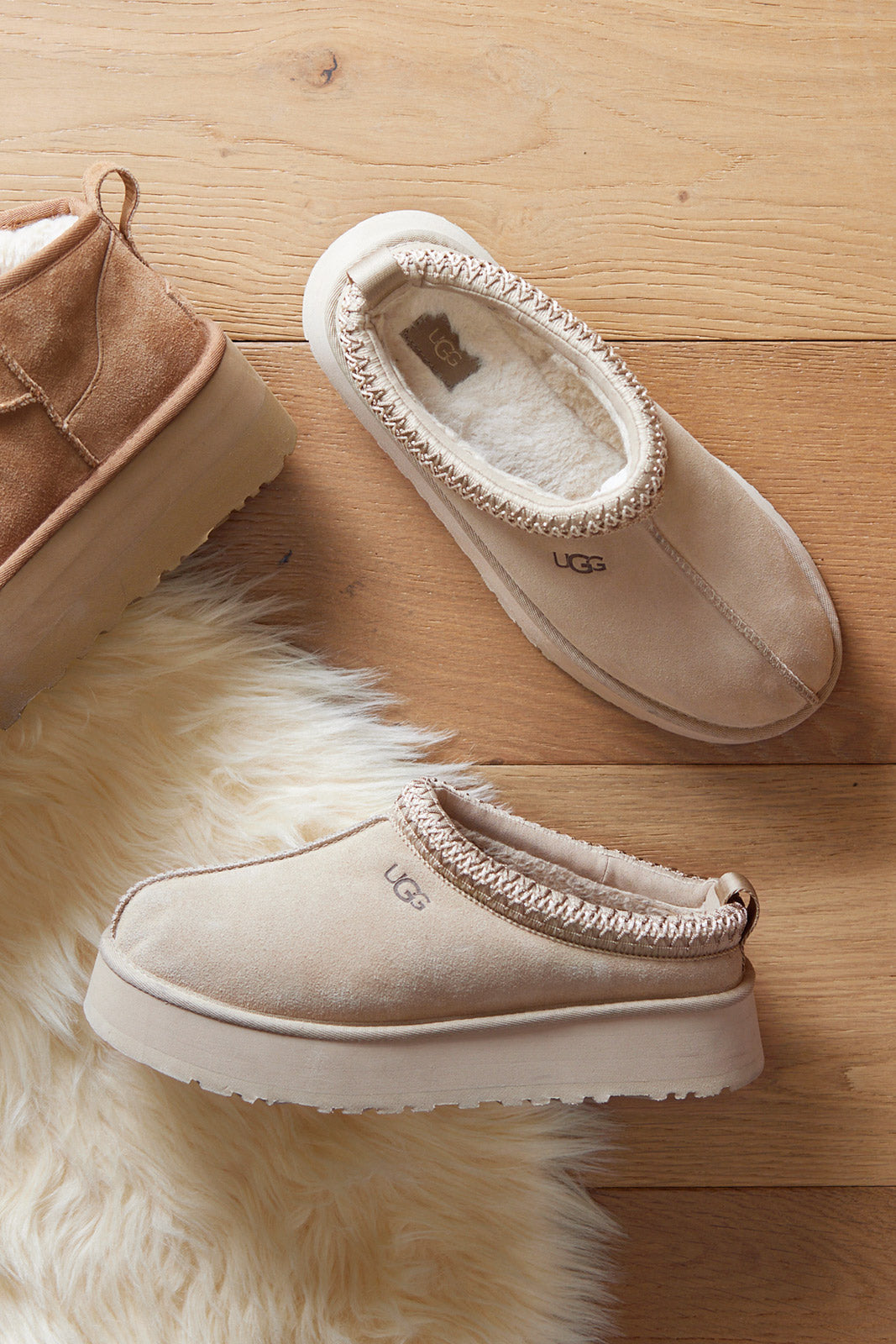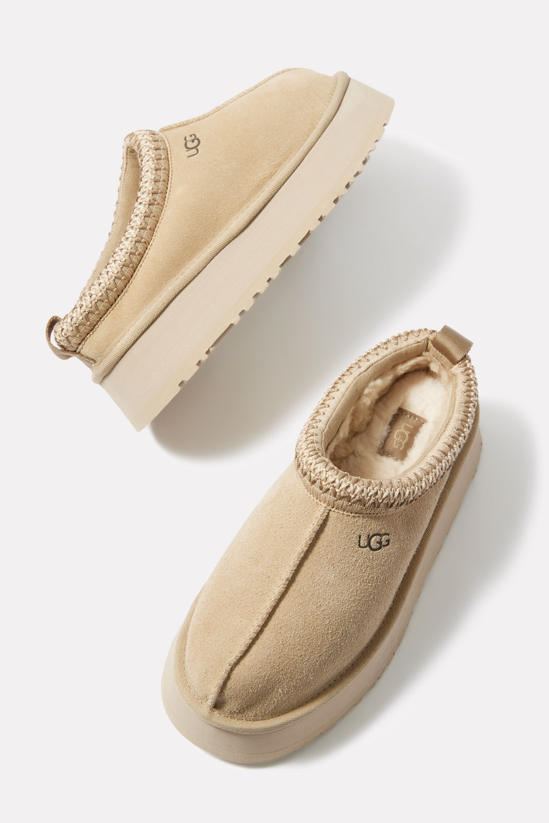 The UGG? Tazz platform slipper is crafted in a suede fabric with an EVA outsole and cozy UGGplush? lining. a moisture-wicking textile made from a wool-rich blend but made to feel and wear like shearling.