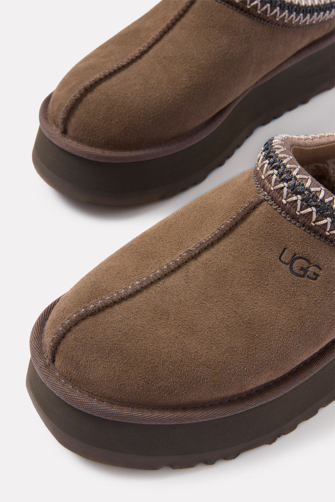 The UGG? Tazz platform slipper is crafted in a suede fabric with an EVA outsole and cozy UGGplush? lining. a moisture-wicking textile made from a wool-rich blend but made to feel and wear like shearling.