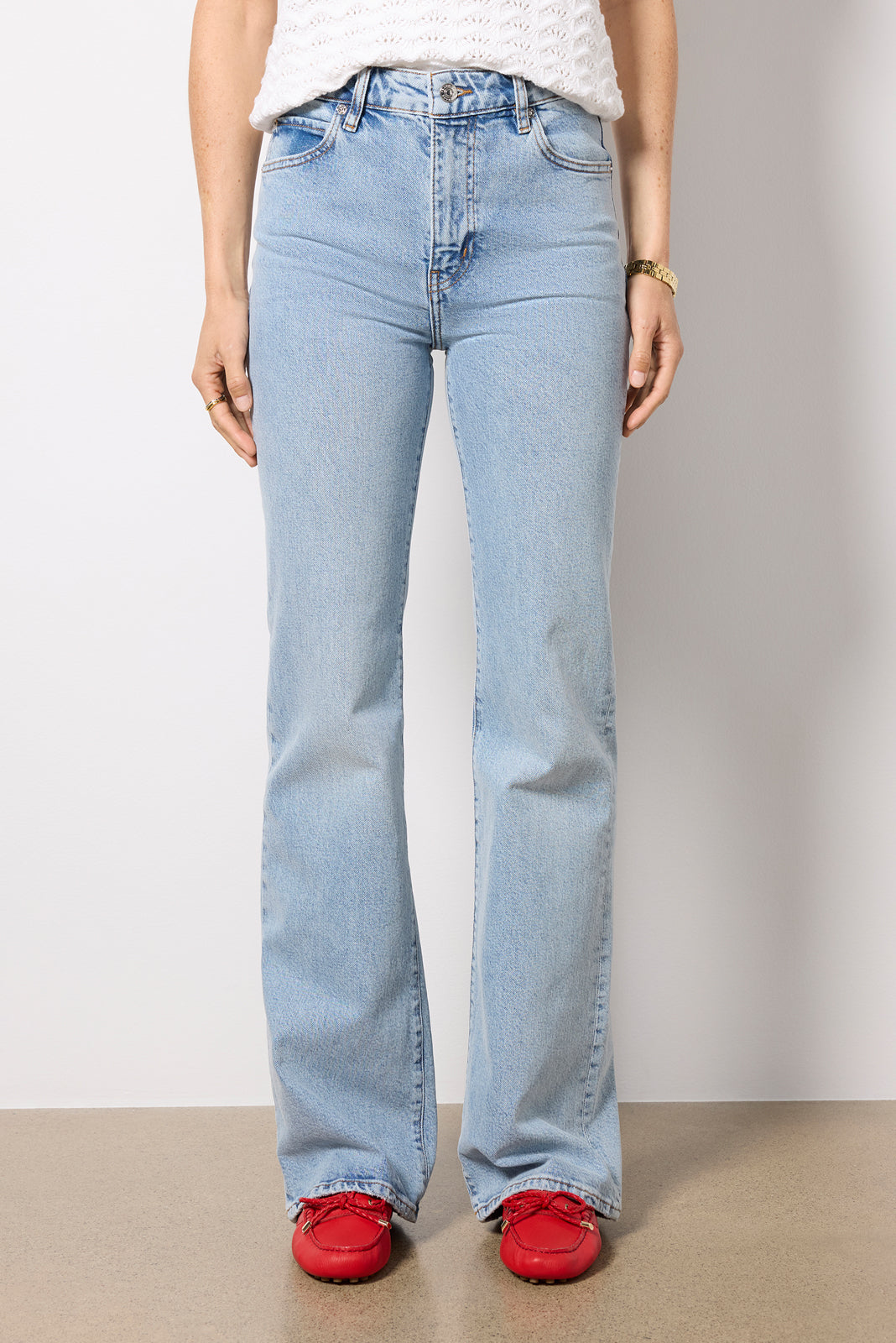Designed with a vintage bootcut silhouette. the Arrow jean by FRAME features a high-rise fit. full-length leg. and soft. structured cotton denim with a hint of stretch.